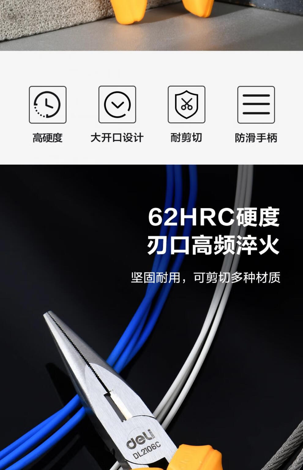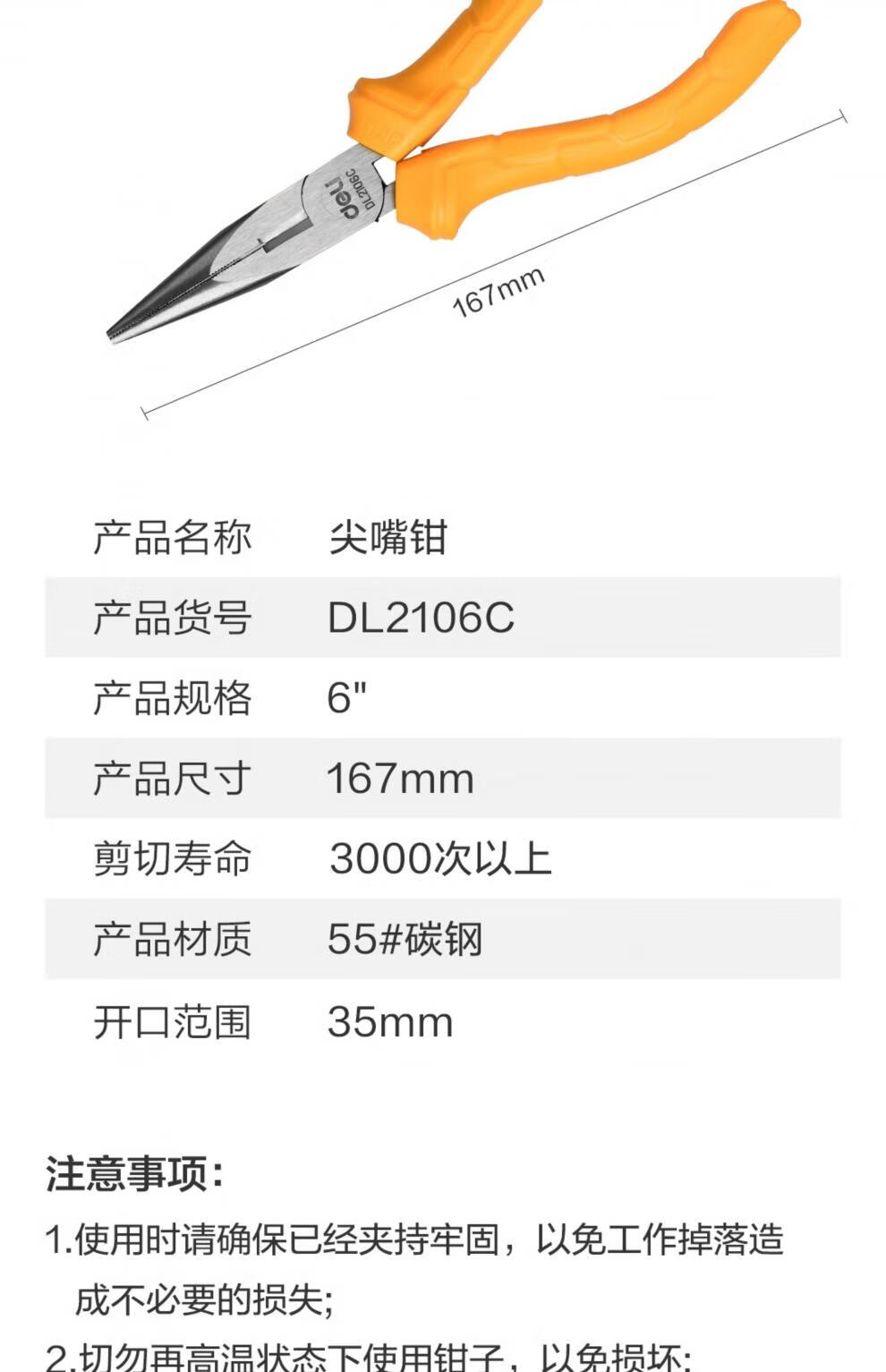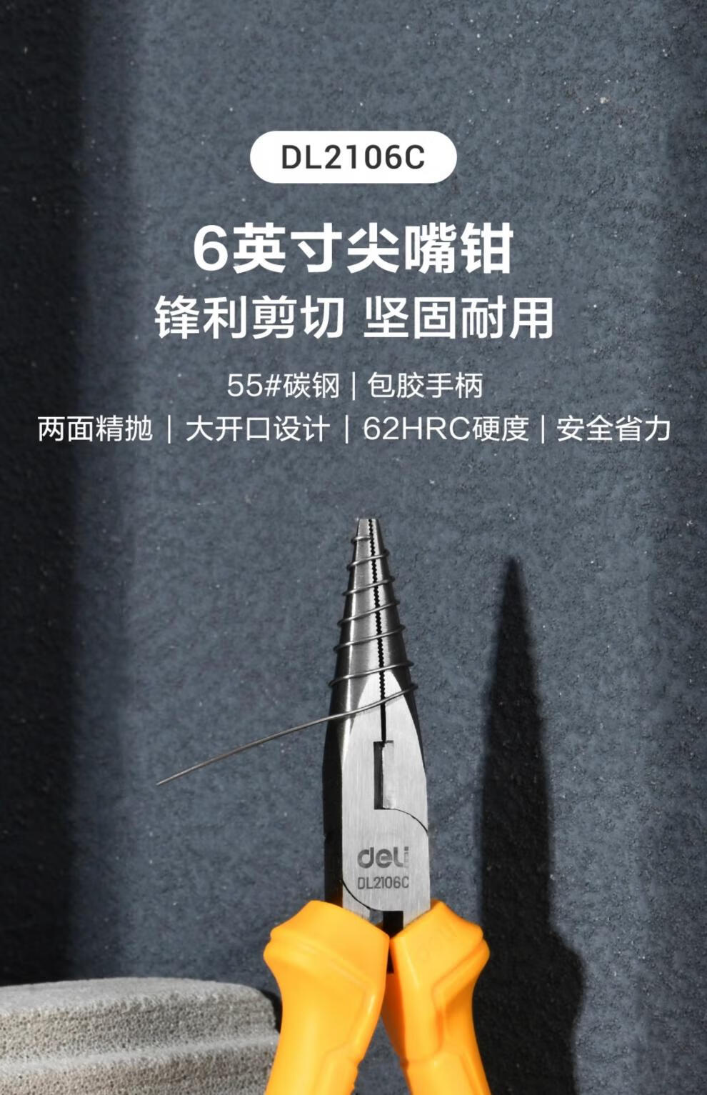得力 德式尖嘴钳 DL2106C 黄色 6寸 1把