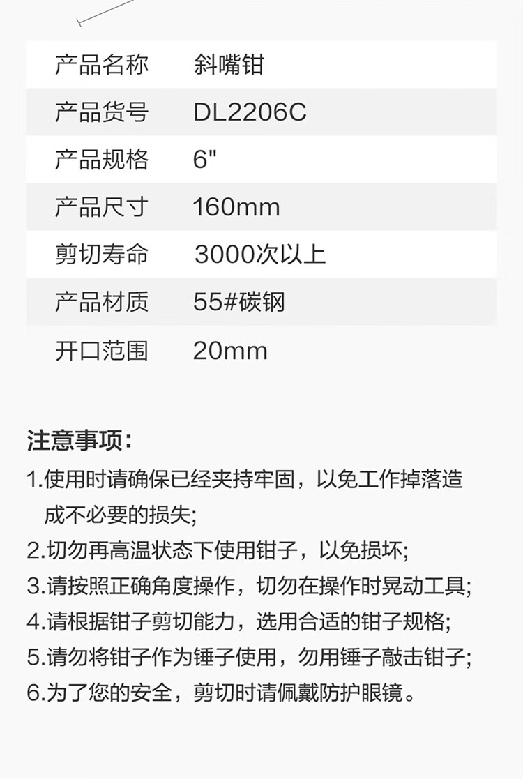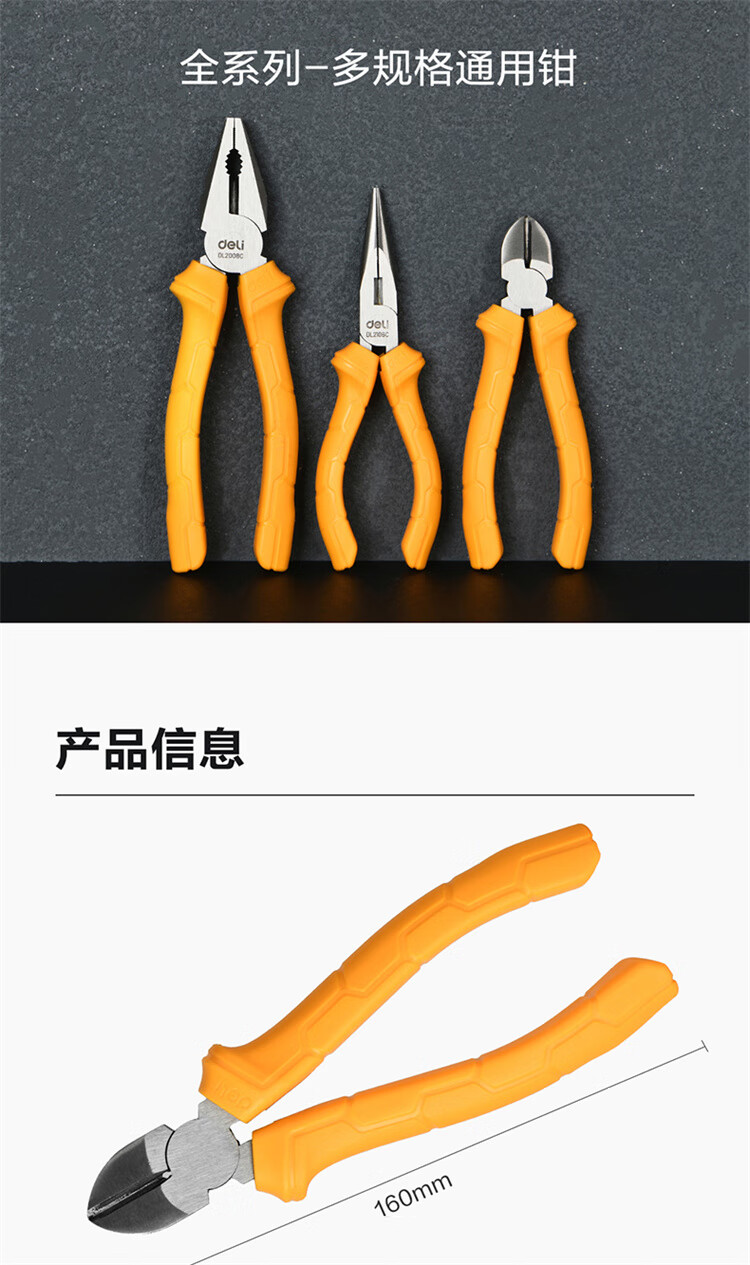 得力 德式斜嘴钳 DL2206C 黄色 6寸 1把