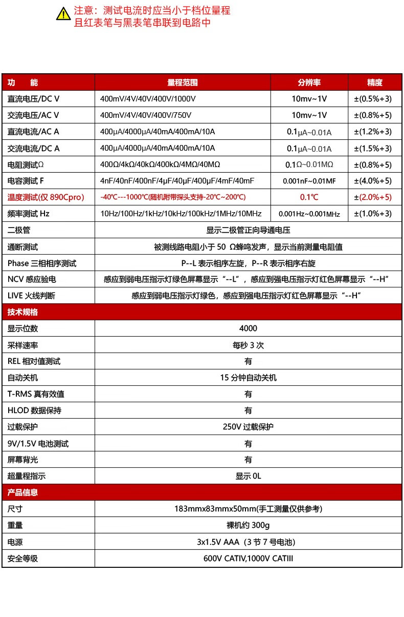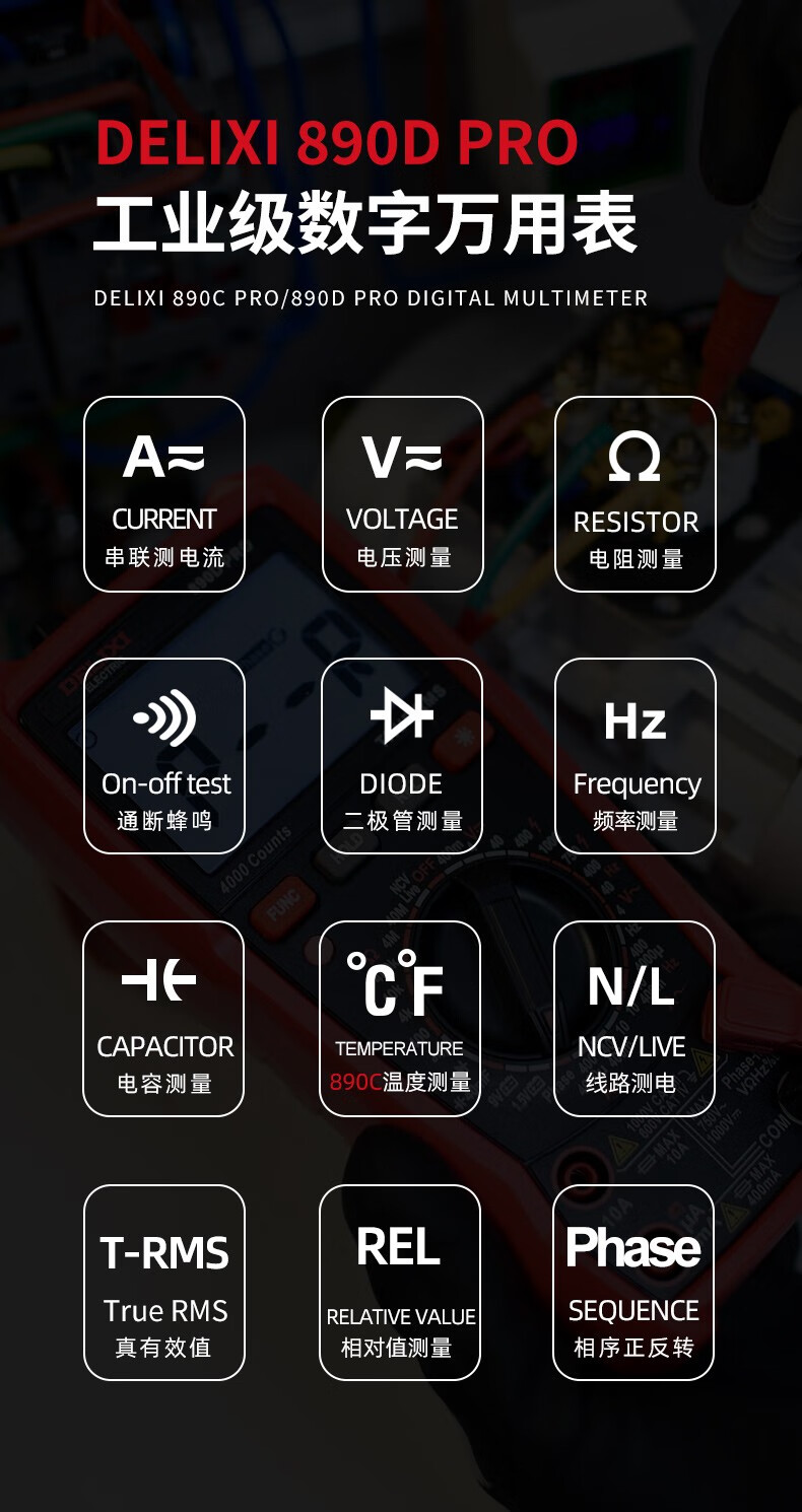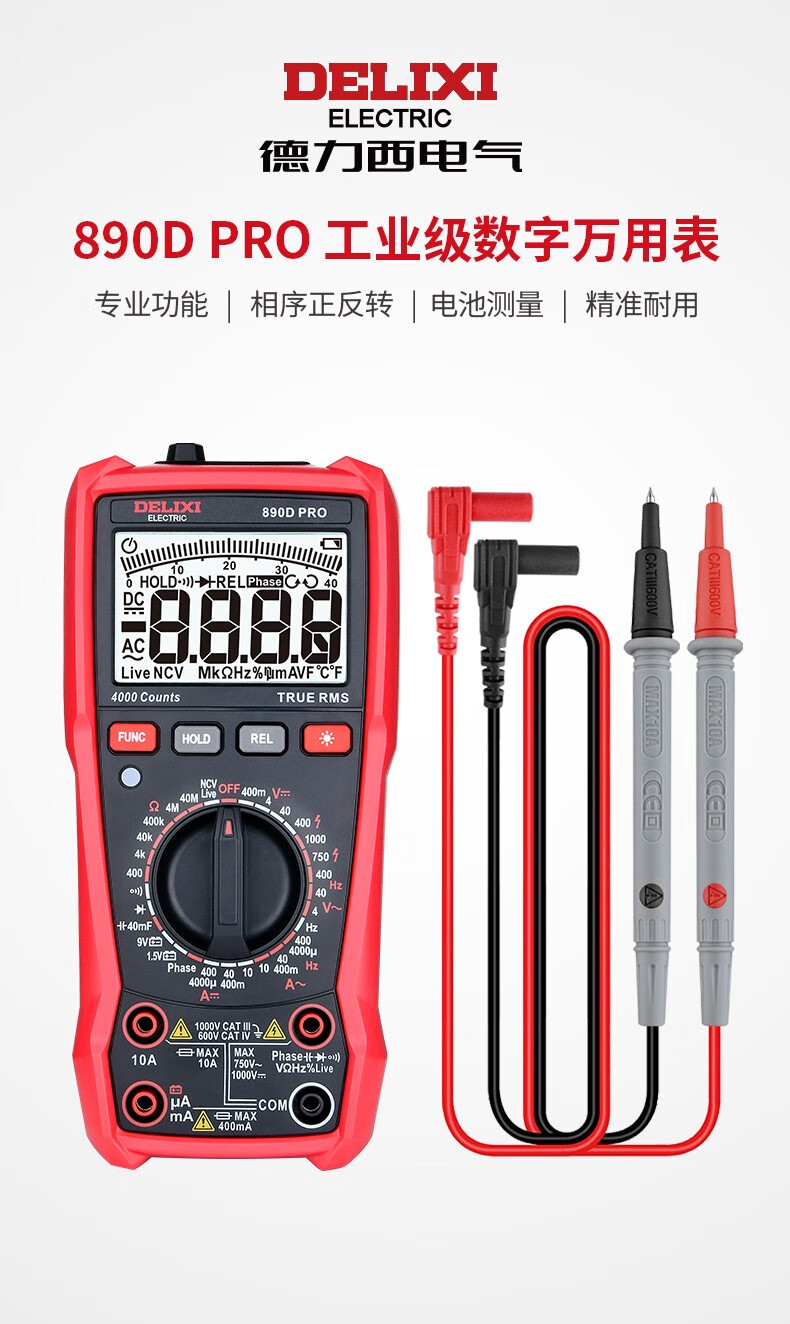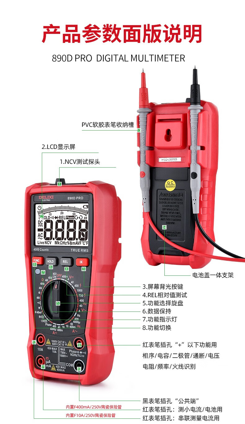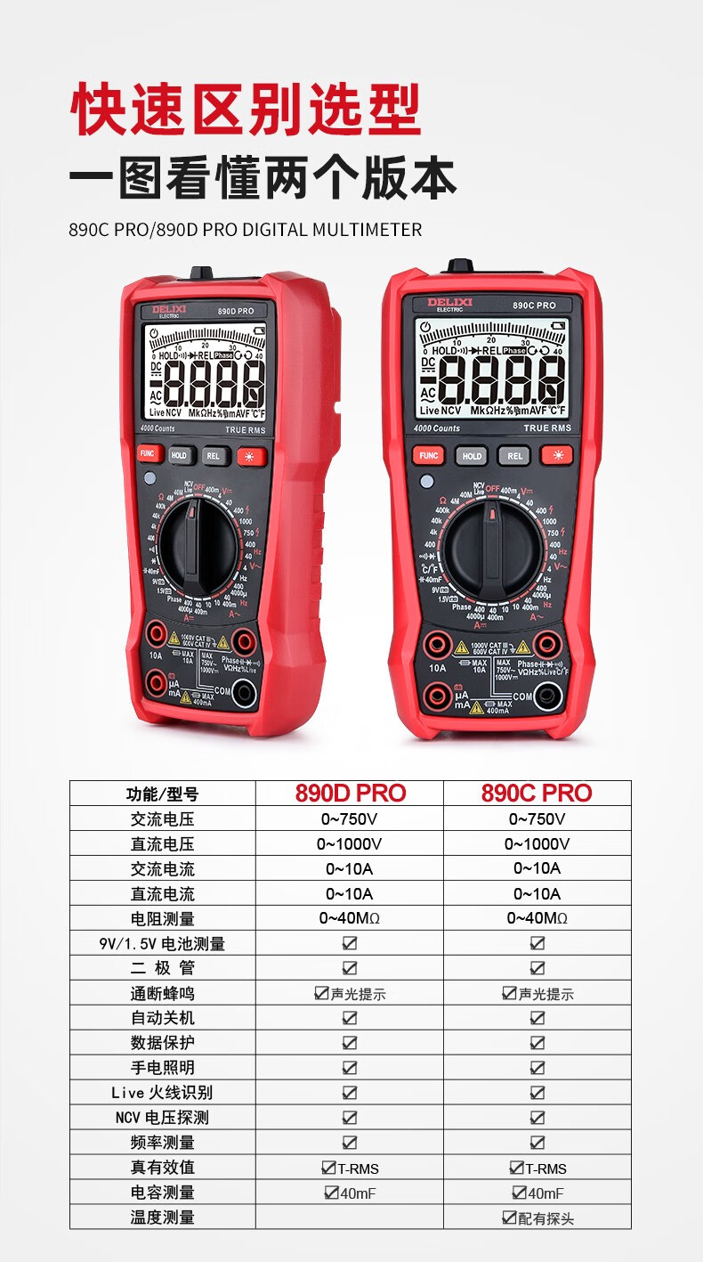 德力西电气 高精度防烧智能万用表 890D pro 890C+仪表包 1个