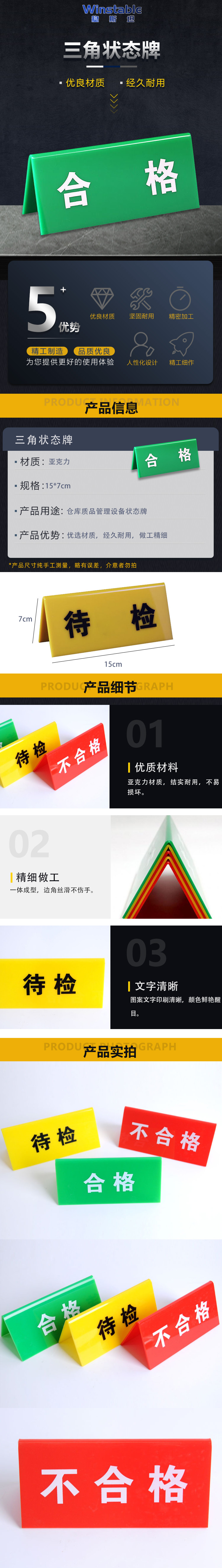 稳斯坦 亚克力三角状态牌 W7261 双面合格(15*7) 1个