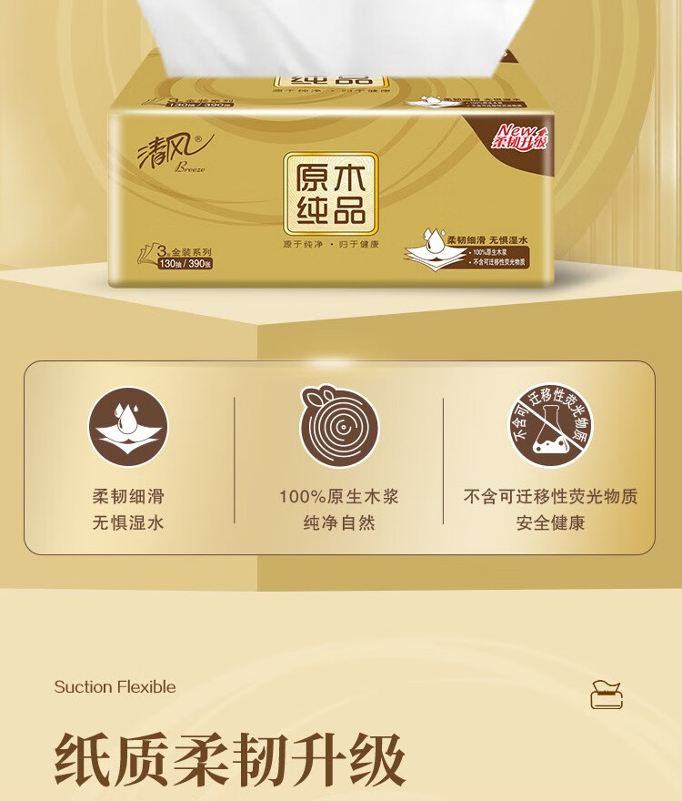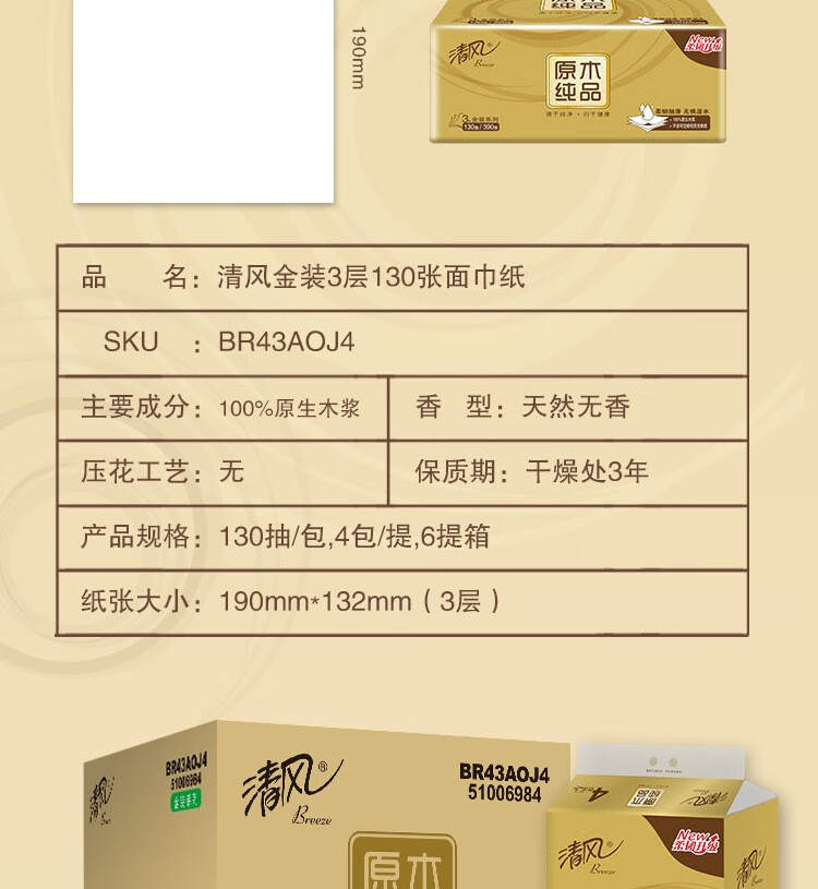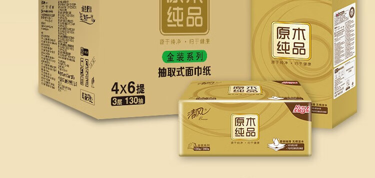 清风 抽纸 190*132mm 3层 130抽 24包 1箱