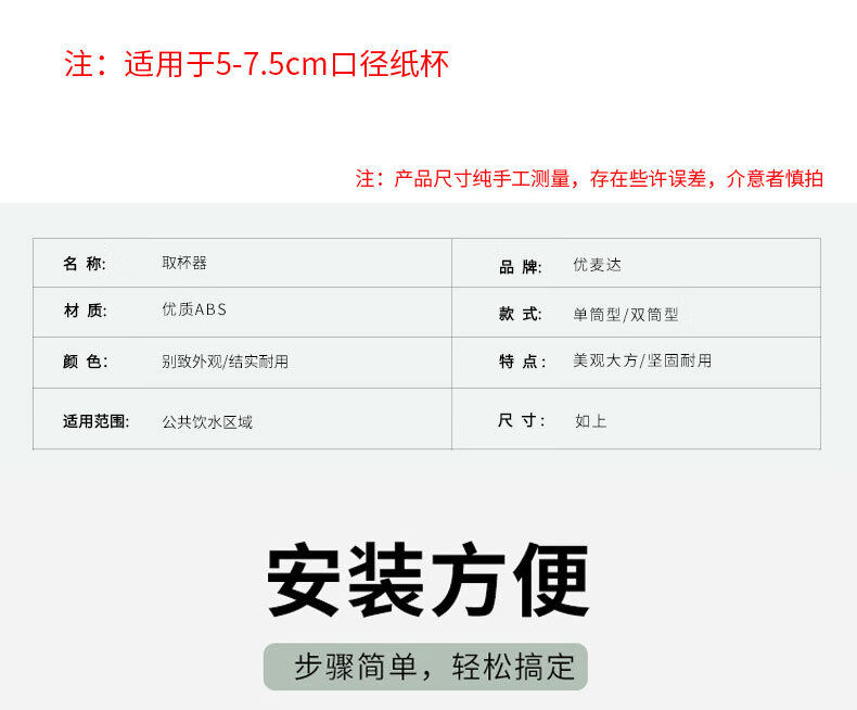 优麦达 自动取杯器 YMD131 白色双筒 1个