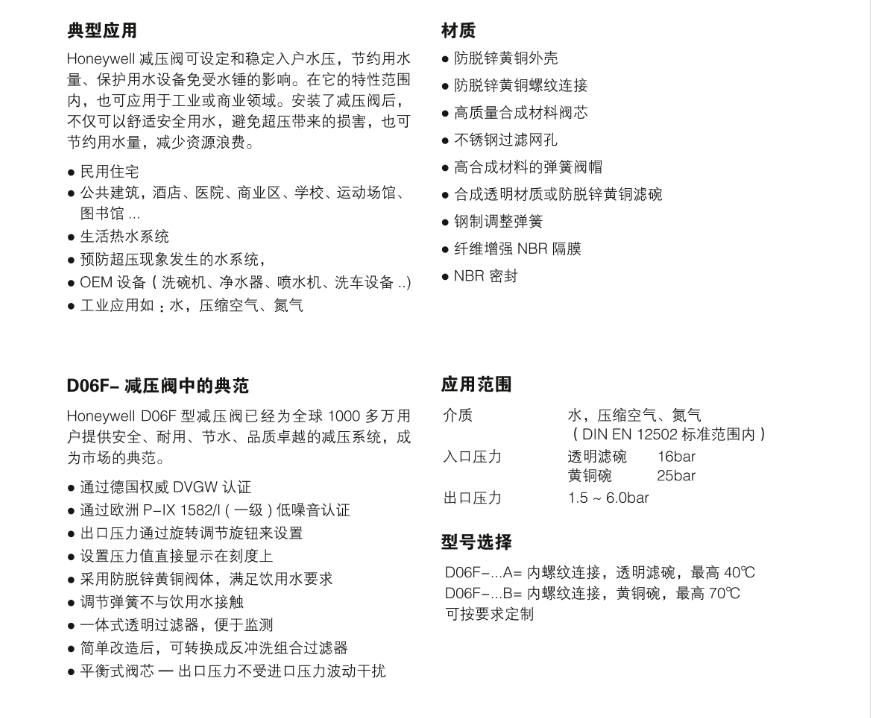 霍尼韦尔 减压阀 D06F-3/4A DN20 1个