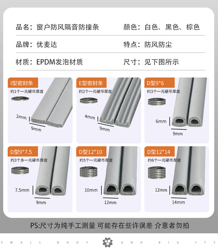 优麦达 自粘型防撞条 黑E型9*4mm 6米 1卷