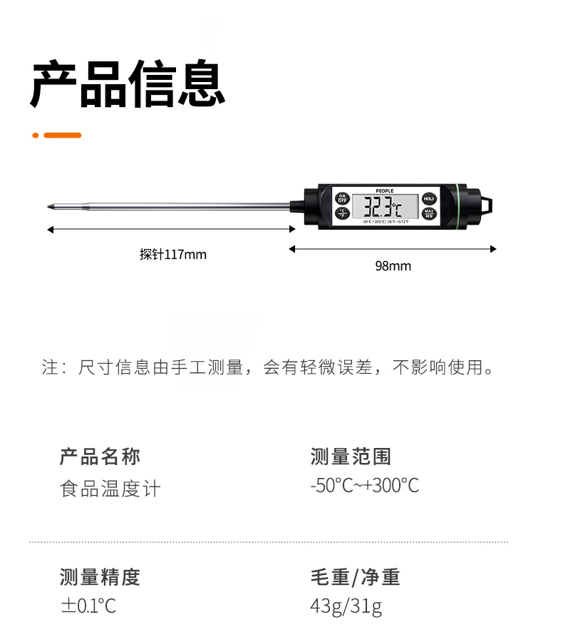 人民电器 食品温度计 W5006 黑色 117*98mm 1个