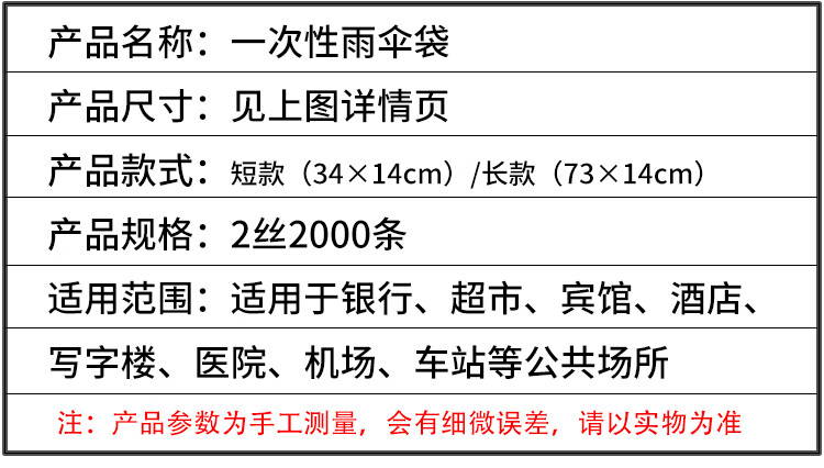 稳斯坦 一次性雨伞袋 WL-105 长款 73*14cm 2丝 2000条 1包