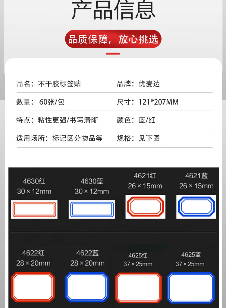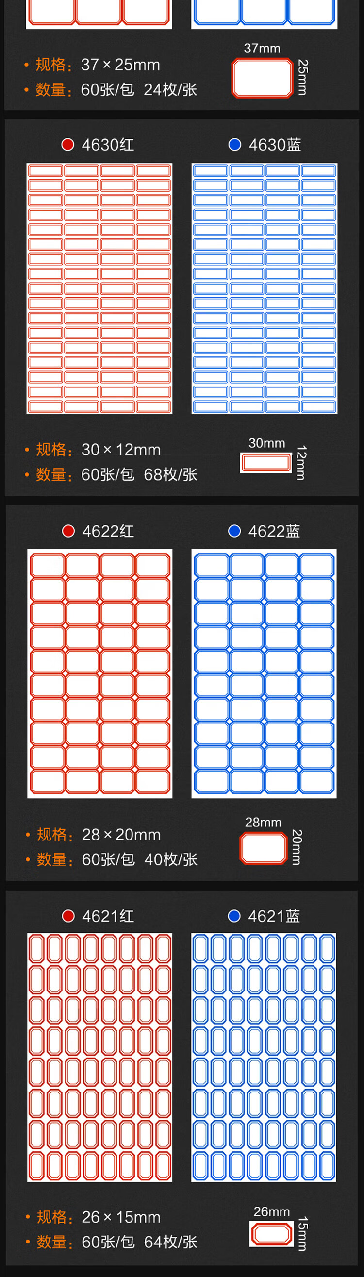 优麦达 标签贴纸 YL15 蓝色 37*25mm 1440枚 1件