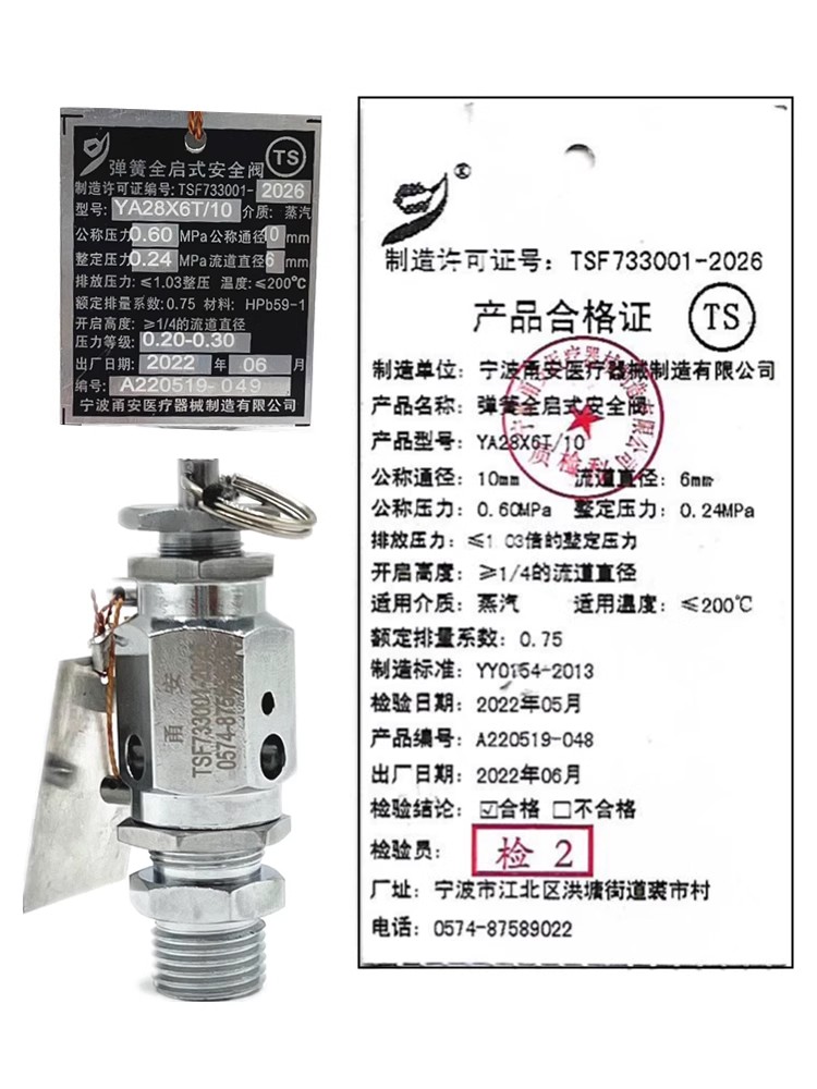宁波甬安 弹簧全启式安全阀 YA28X6T/10 DN10 【整定0.26】 1个