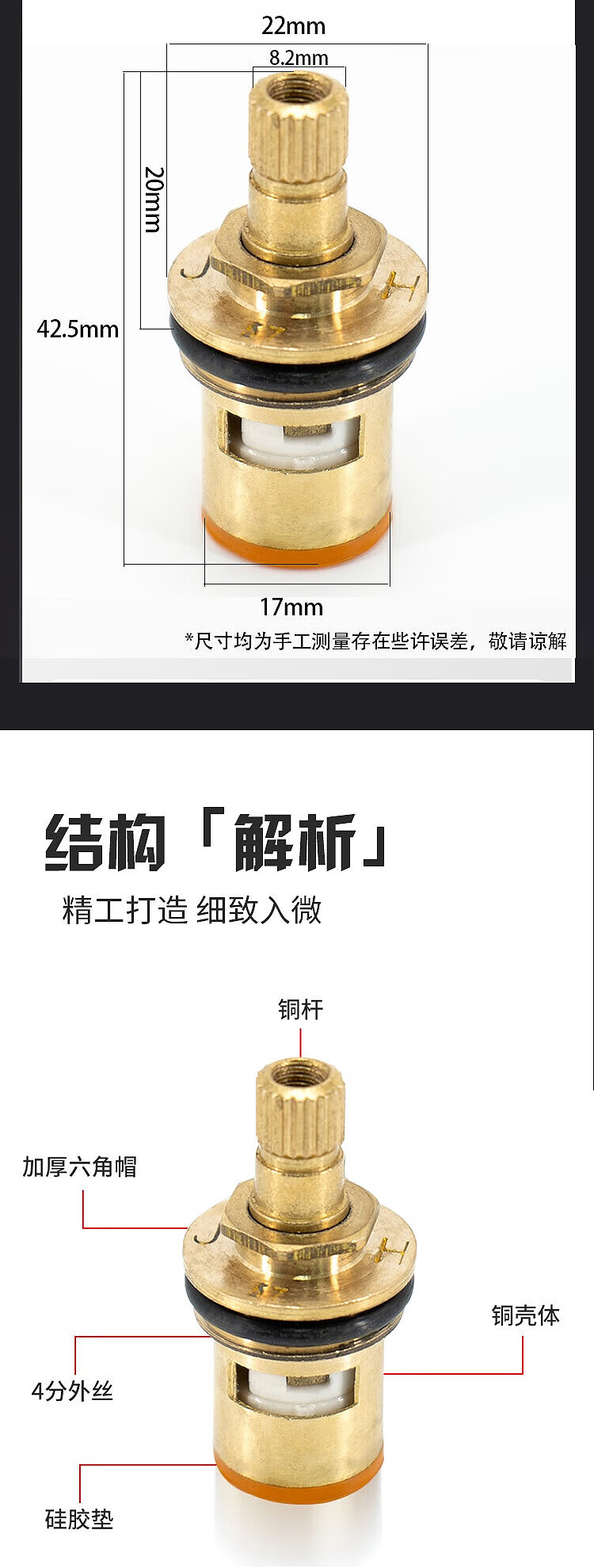 赫思迪格 水龙头水嘴配件 HSJZ-966 铜铜芯铜杆阀芯 5个 1件