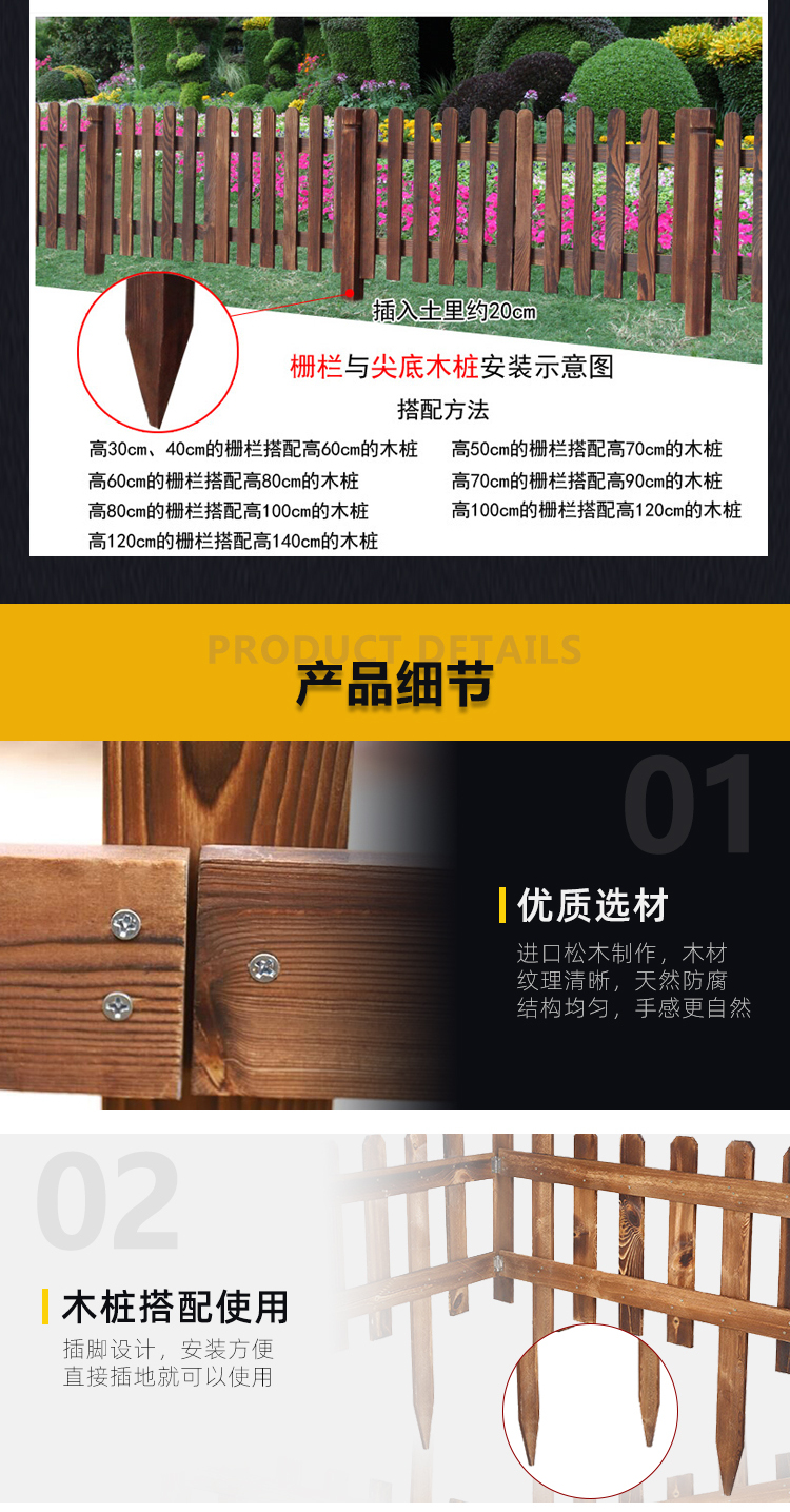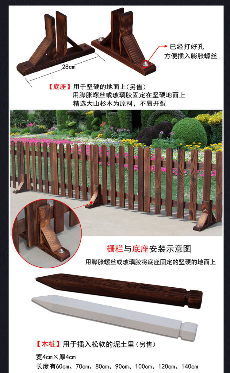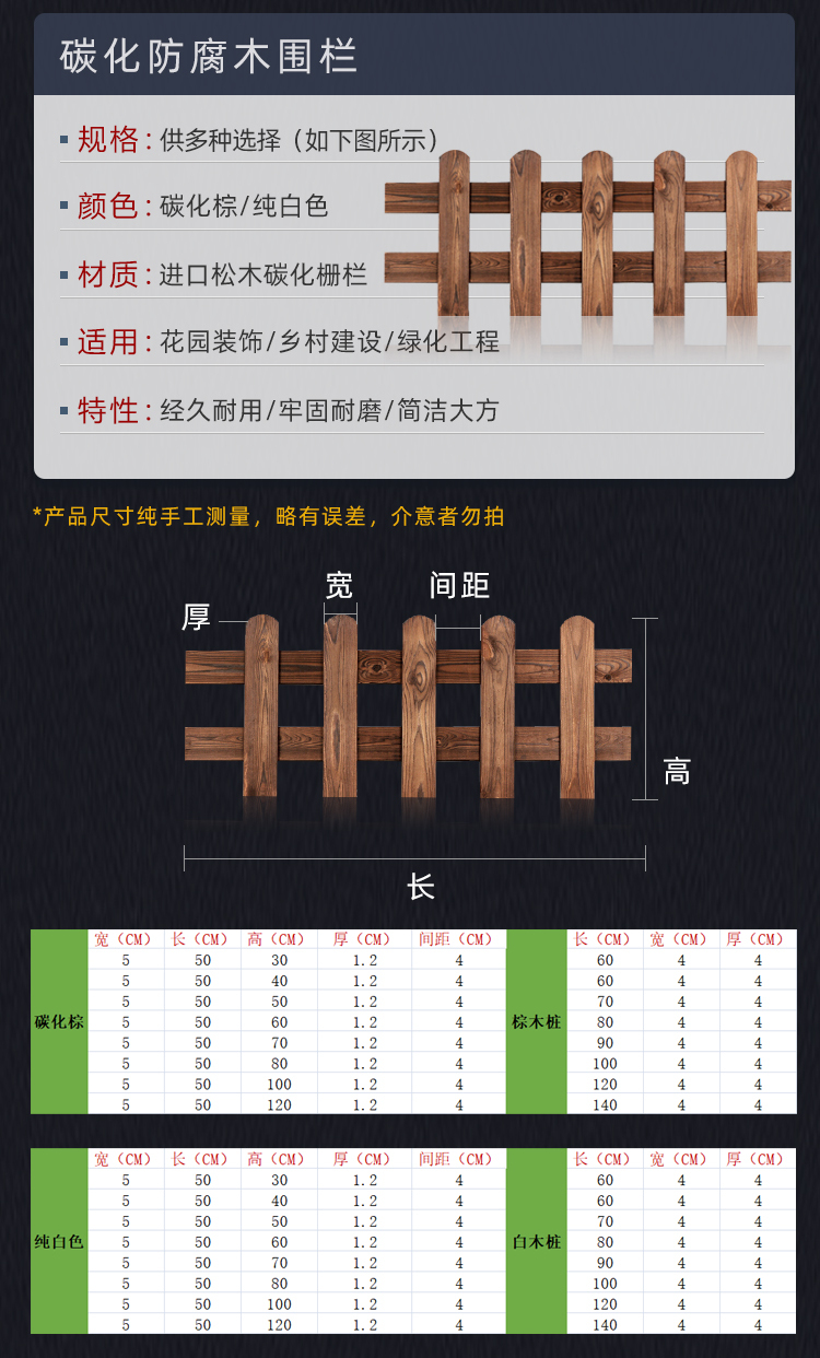 稳斯坦 碳化防腐木围栏 W238 纯白色 宽50*高40cm 1个