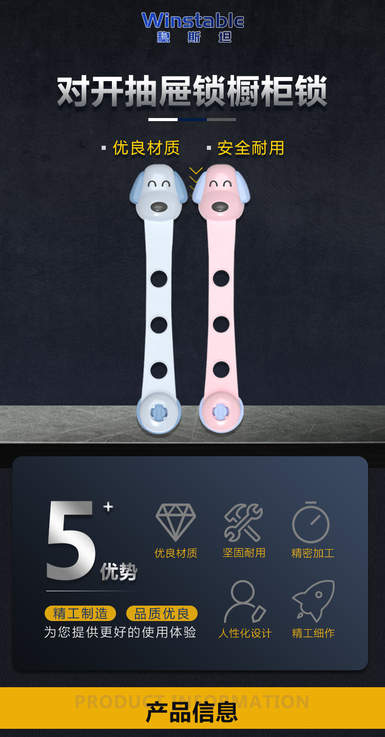 稳斯坦 对开抽屉锁橱柜锁 W1012 蓝色 4个 1件