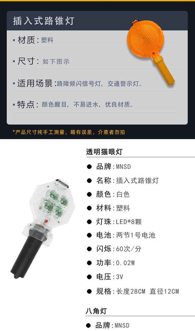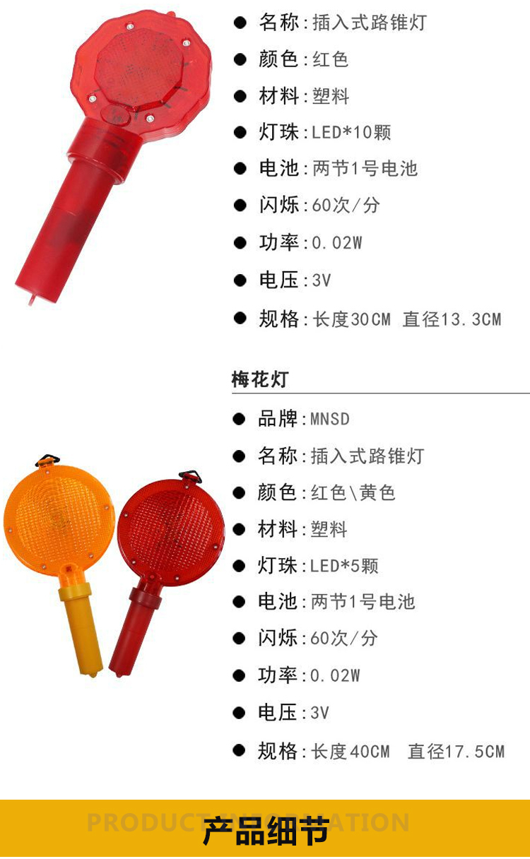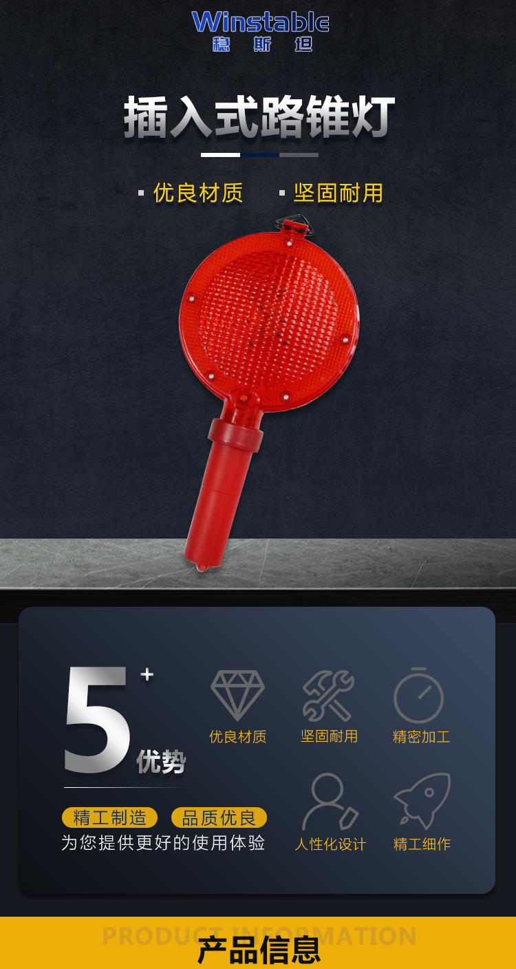 稳斯坦 插入式路锥灯 W645 黄色梅花灯电池款 1个