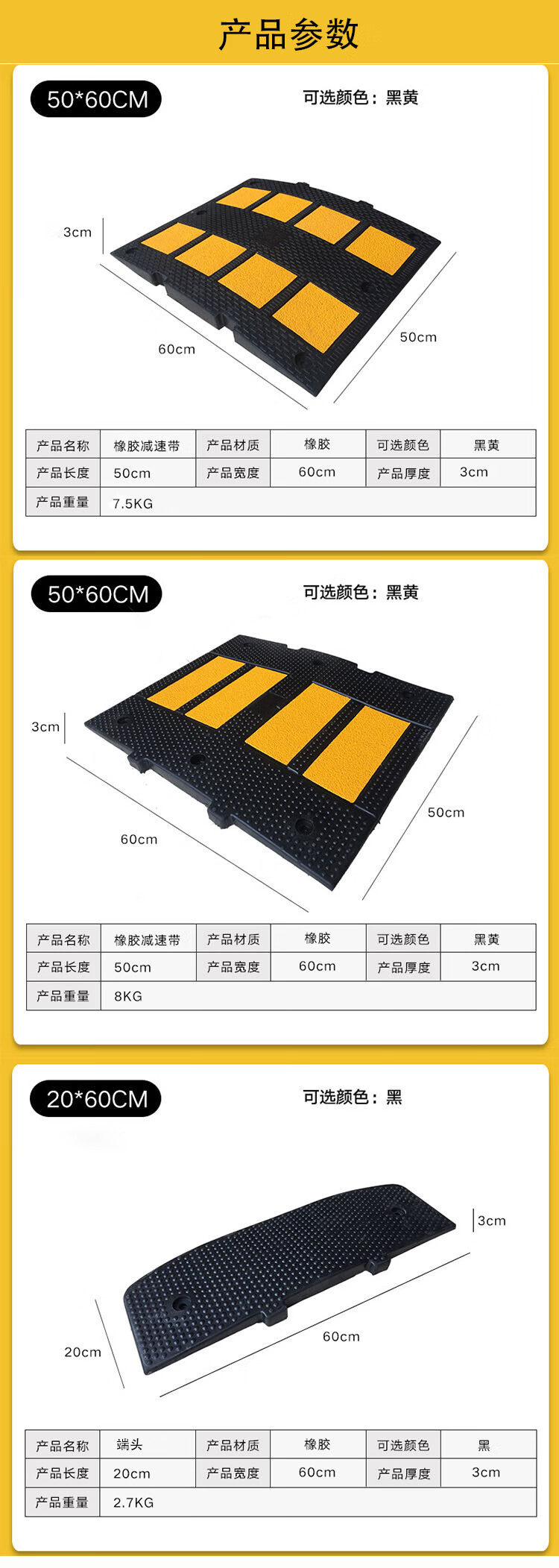 海斯迪克 减速带 gnjz-1084 双黄 50*60*3cm 1个
