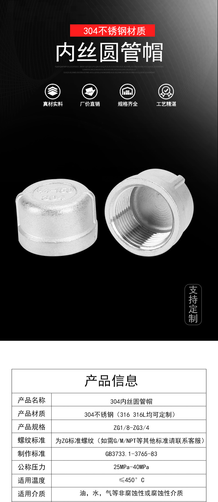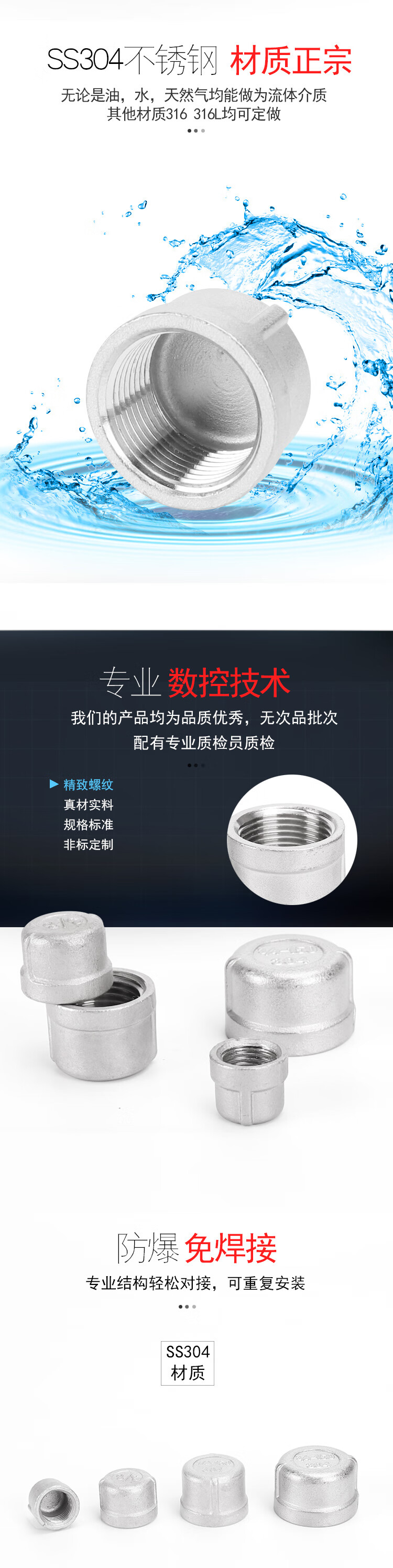 冰禹 圆管帽内丝堵头 BJ-415 304不锈钢 DN40-1-1/2 1个