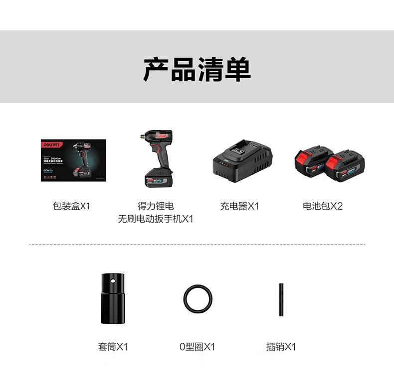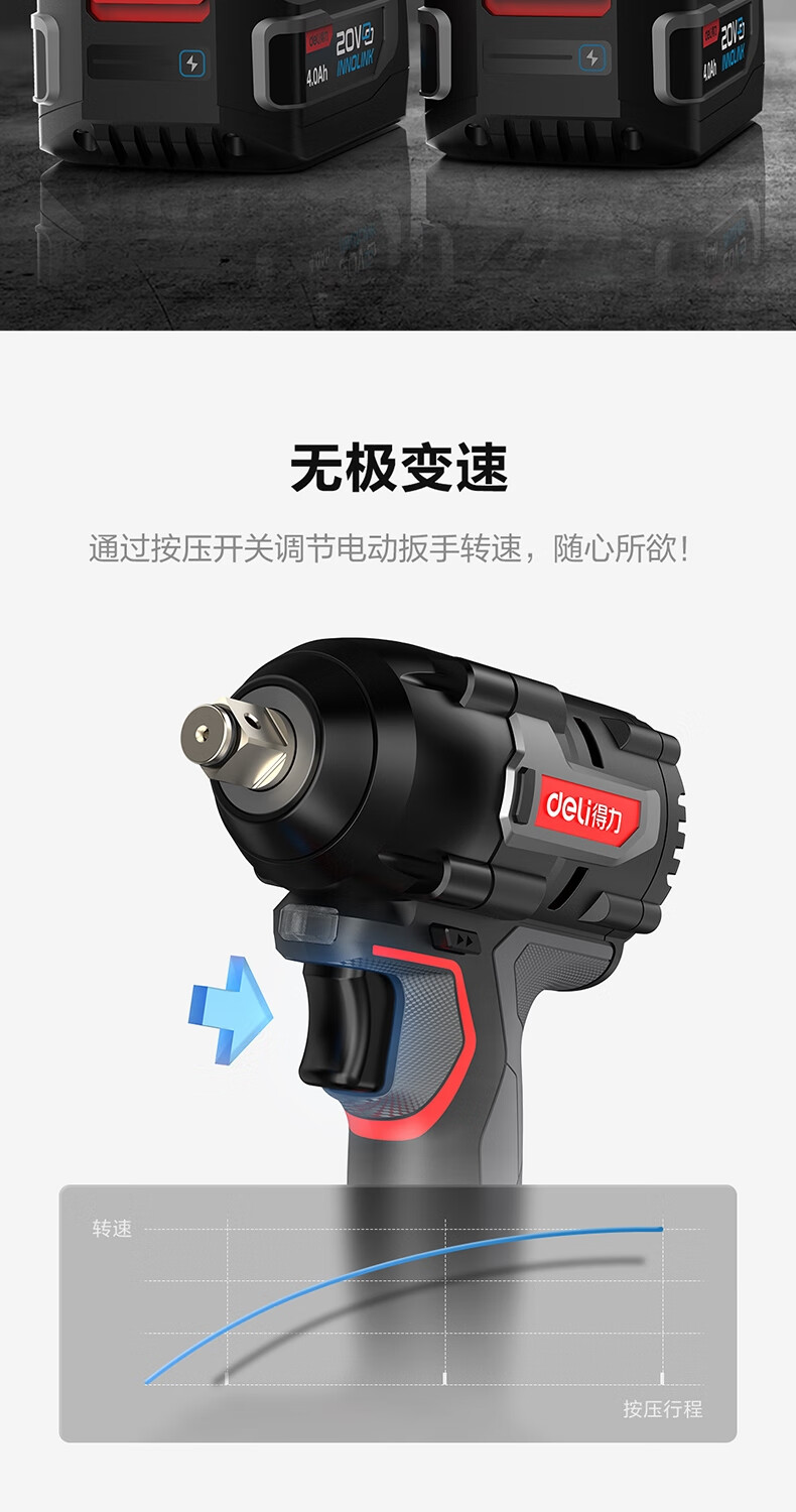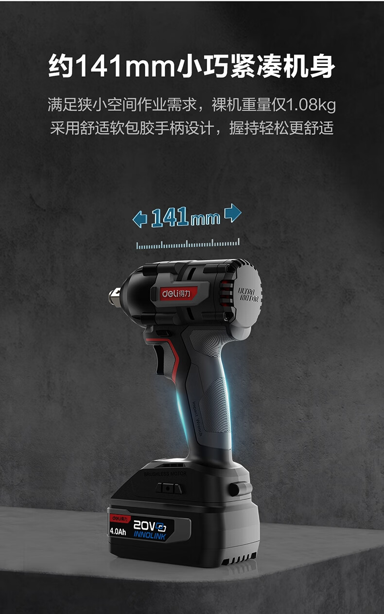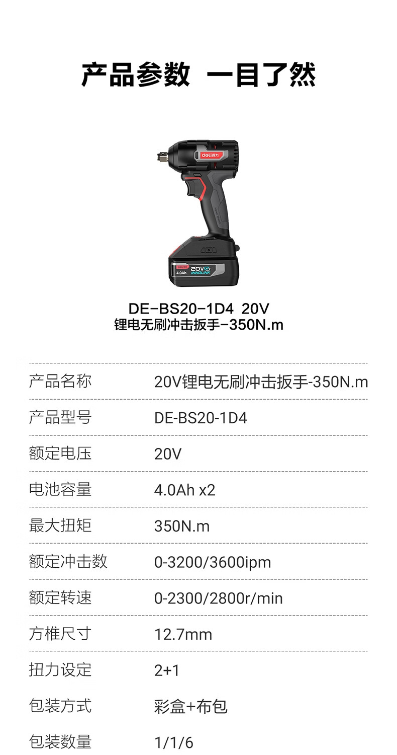 得力 冲击扳手 DE-BS20-1D4 20V 350Nm 双电4.0Ah 1台