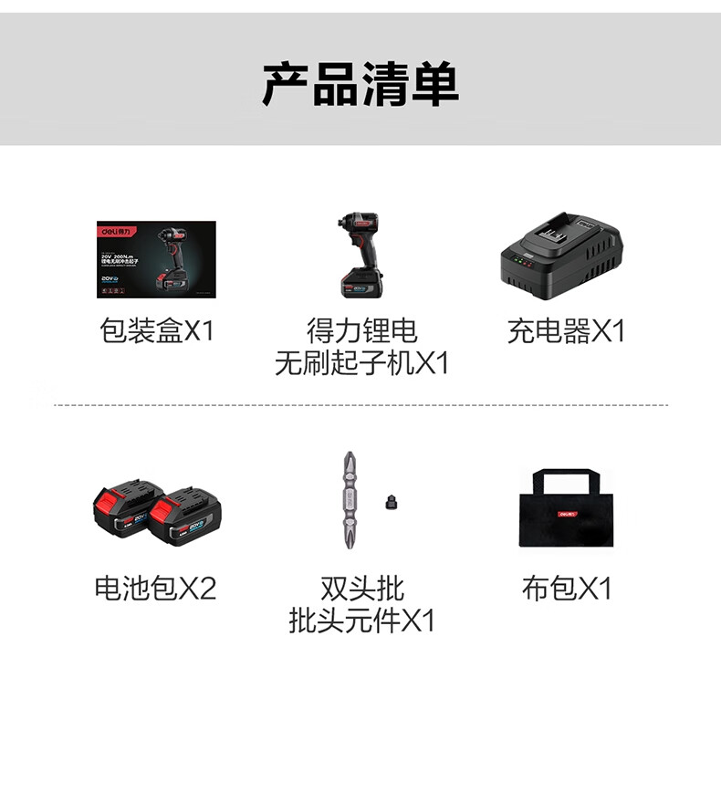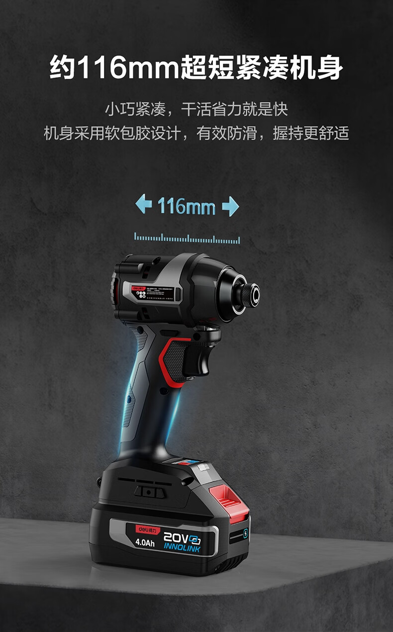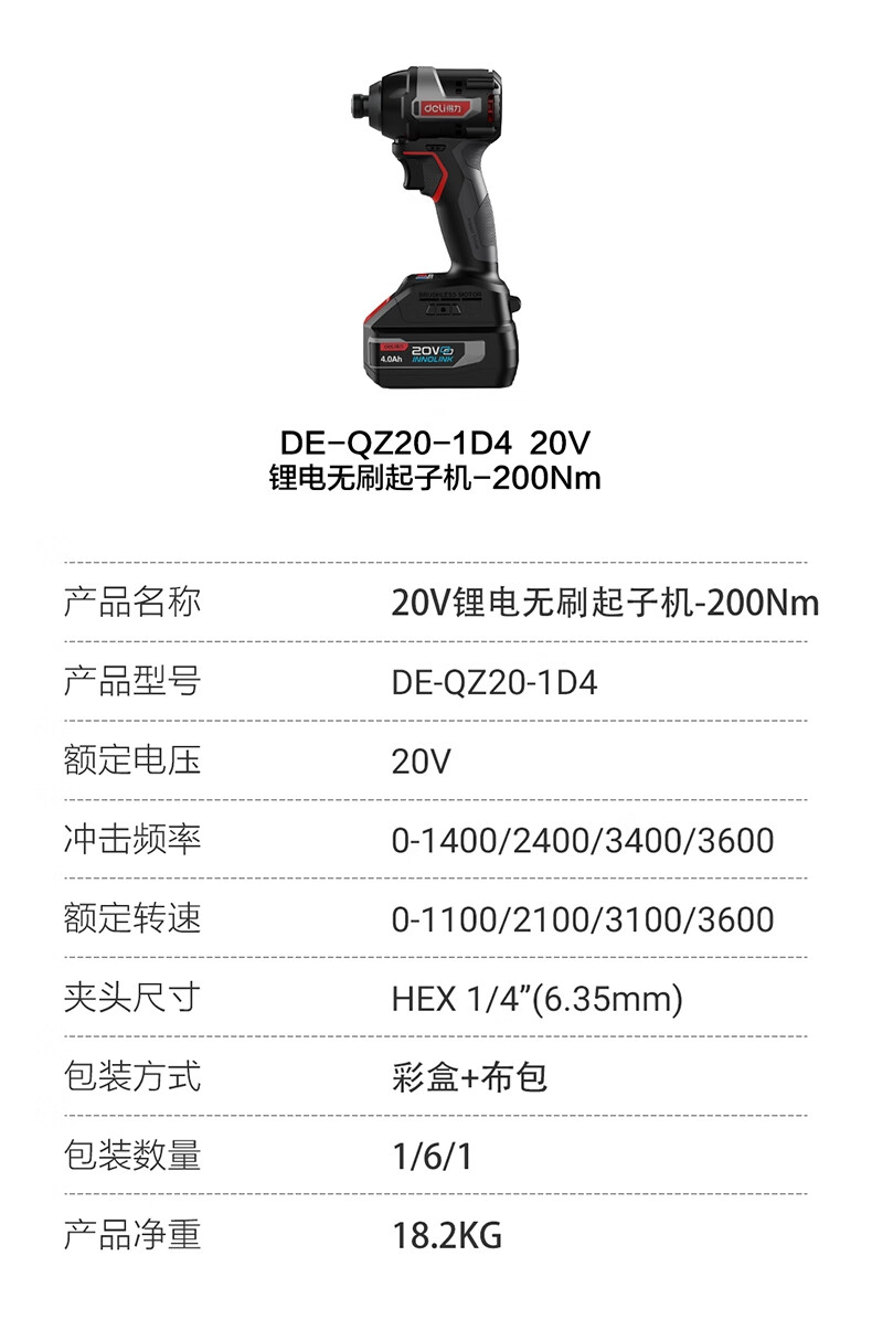 得力 锂电冲击扳手 DE-QZ20-1D4 20V 200Nm 双电4.0Ah 1台
