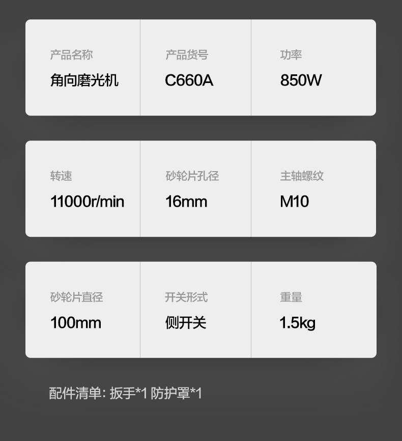 得力 交流角磨机 C660A 850W φ100mm 侧开关 1台