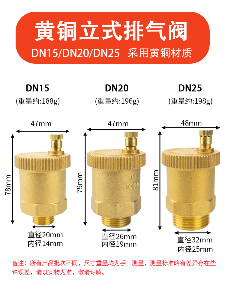 海斯迪克 排气阀 HKY-209 黄铜 立式 DN25 1个