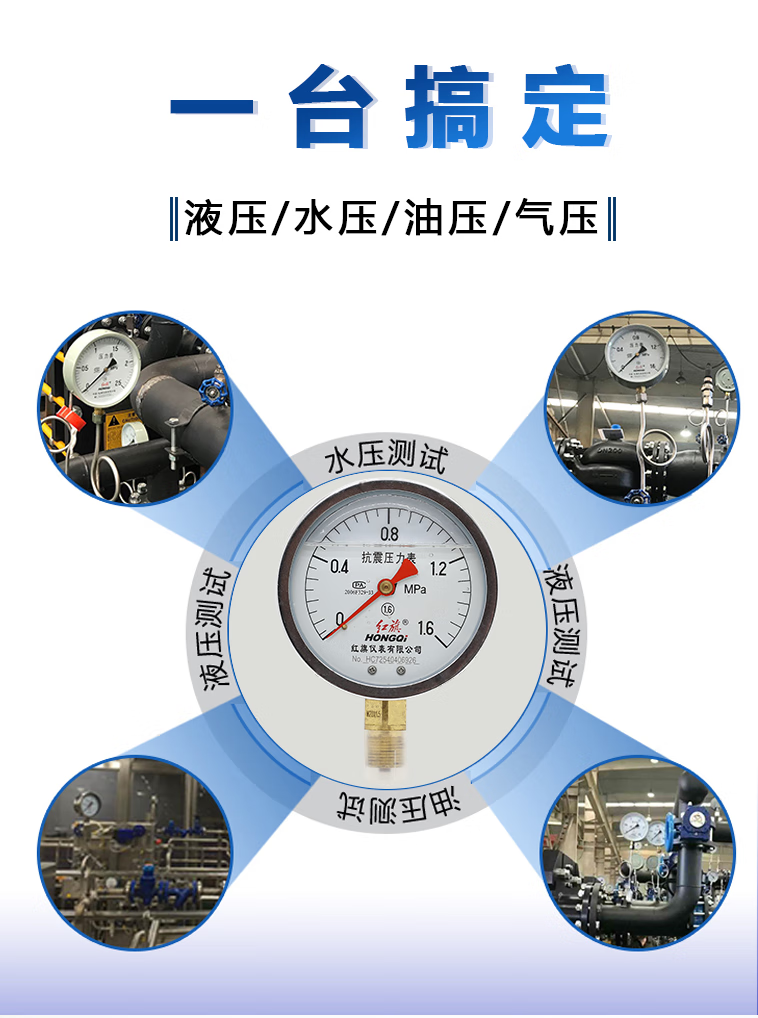 红旗 耐震压力表 YN-60 径向 0-1.6MPA M14*1.5螺纹 1个