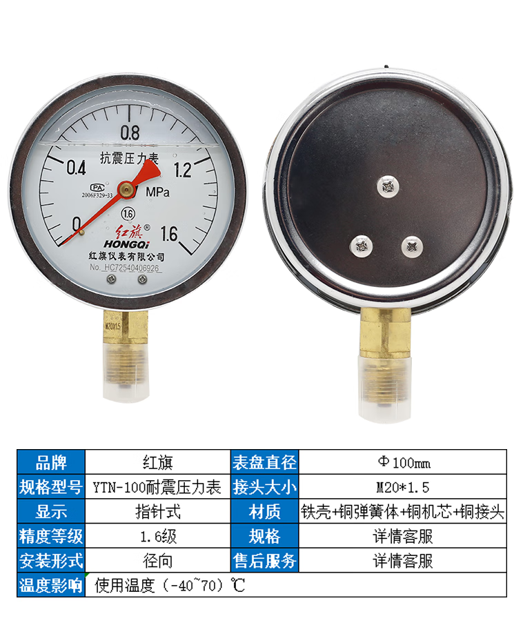 • 商品名称:红旗 耐震压力表