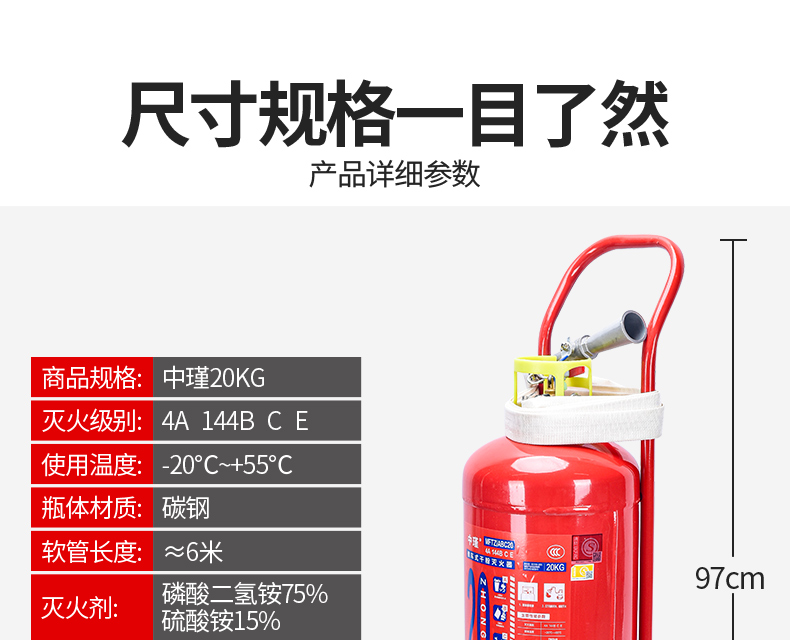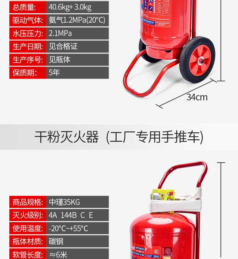 中瑾 手推式干粉灭火器 2025新国标 50kg 1套