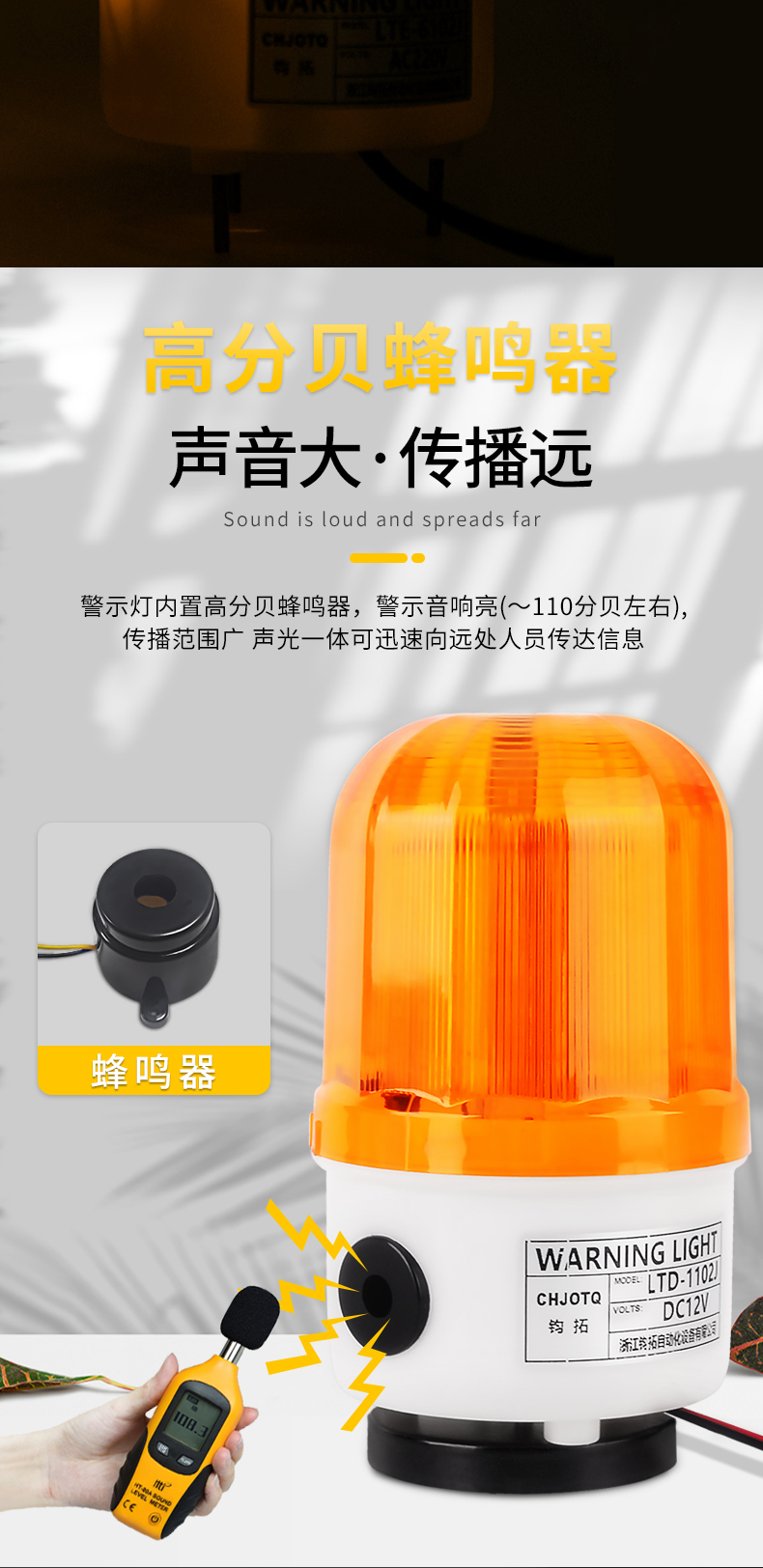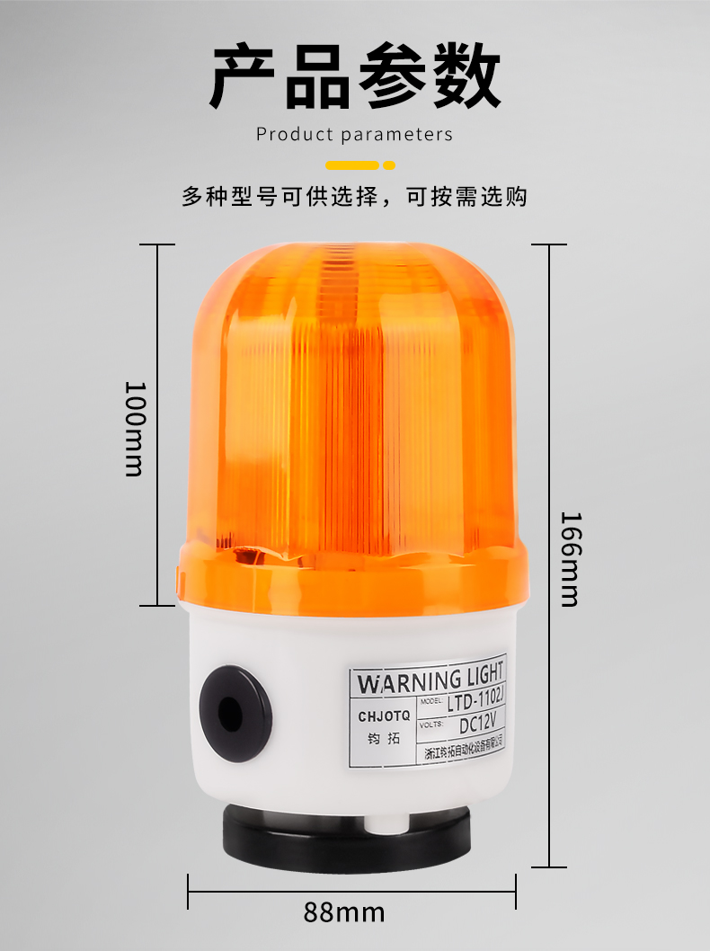 钧拓 施工安全警示灯 LTD-1102 旋转无声 12V 16.6×88cm 1个