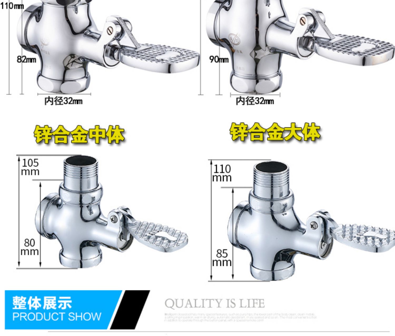 海斯迪克 脚踏式蹲便器冲水阀 hsxy543 合金(铜芯钢板) 1寸 大阀体 1个