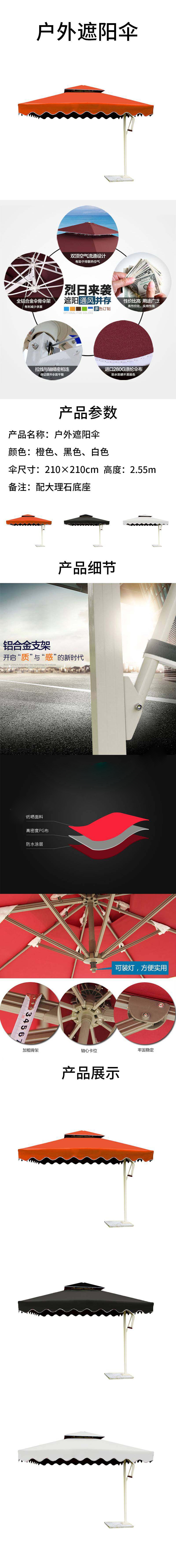 海斯迪克 户外遮阳伞 橙色 210×210×255cm 配大理石底座 1把