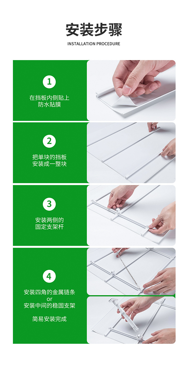 智爱家 挡风板 DLQ-6761 塑钢硬板 链条款 450×450mm 1个