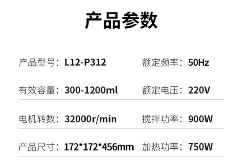 九阳 破壁料理机 L12-P312 按键式 1200ml 1个