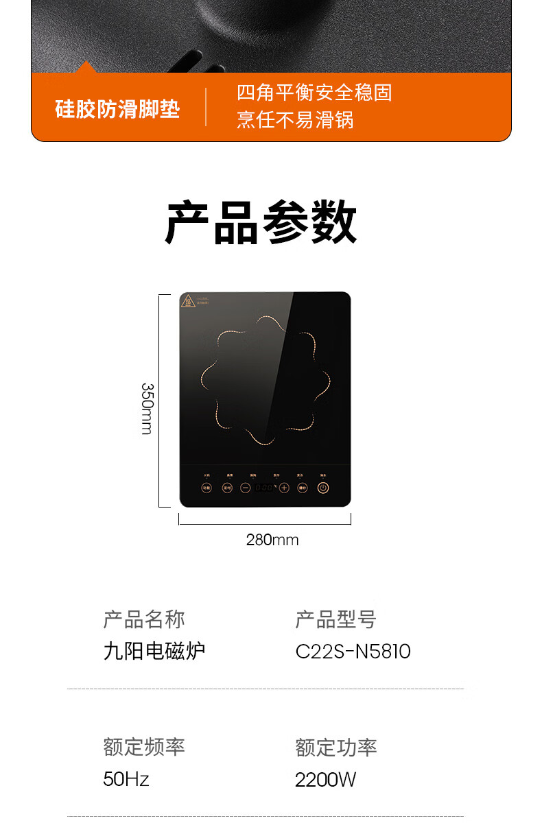 九阳 电磁炉 C22S-N5810 微晶面板 2200w 1台