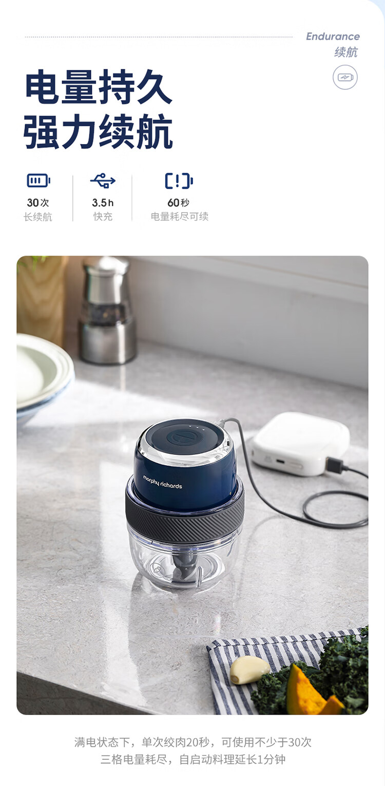 摩飞电器 迷你绞肉机 MR9403 轻奢蓝 0.16L 1个