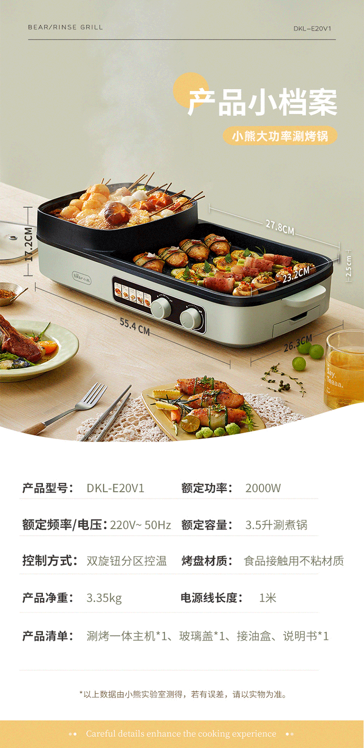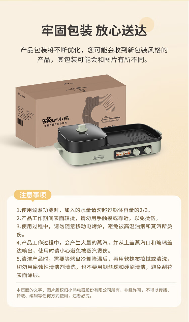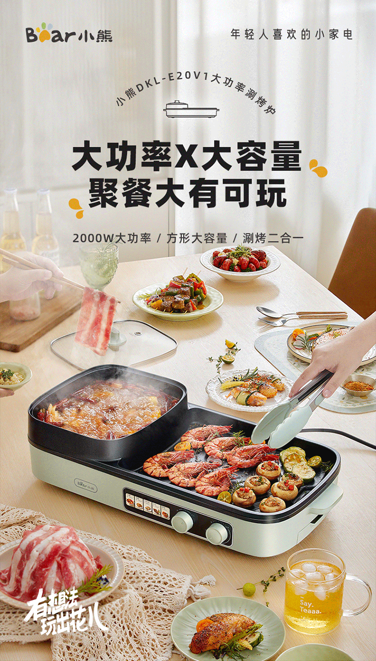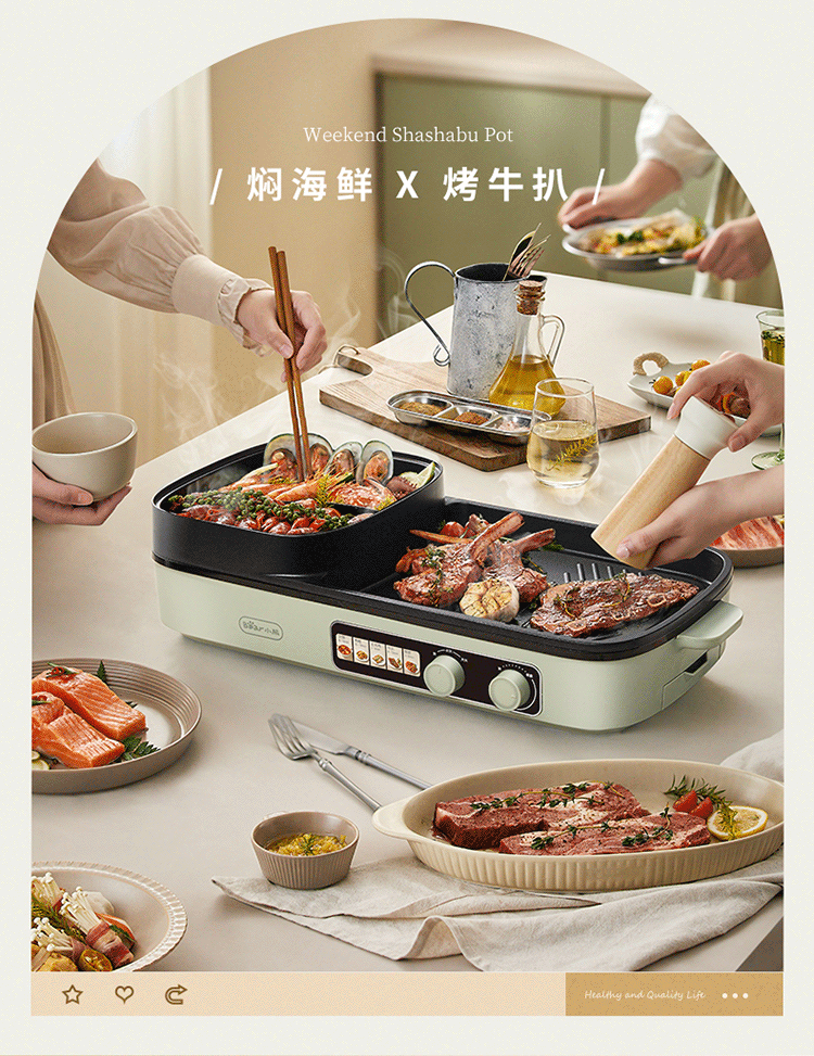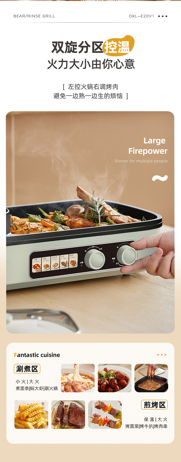 小熊 烤涮一体两用锅 DKL-E20V1 3.5L 2000W 1个