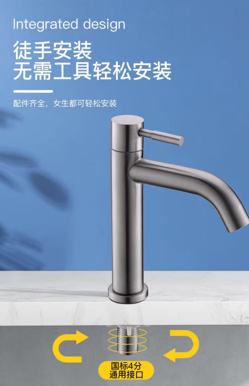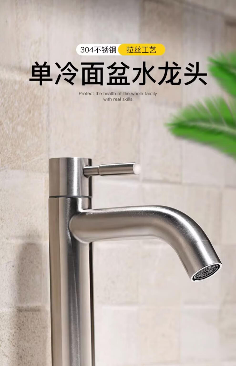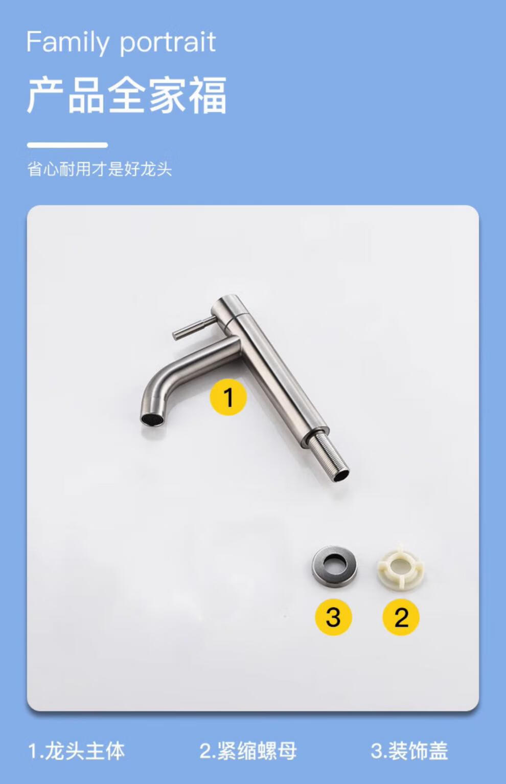 昆古 水龙头 不锈钢单冷 弯嘴(高款)+1根600mm管 1件