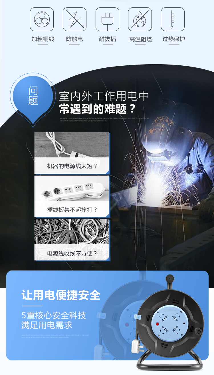 • 50米 4位10A五孔 3×1.5mm²×50m
