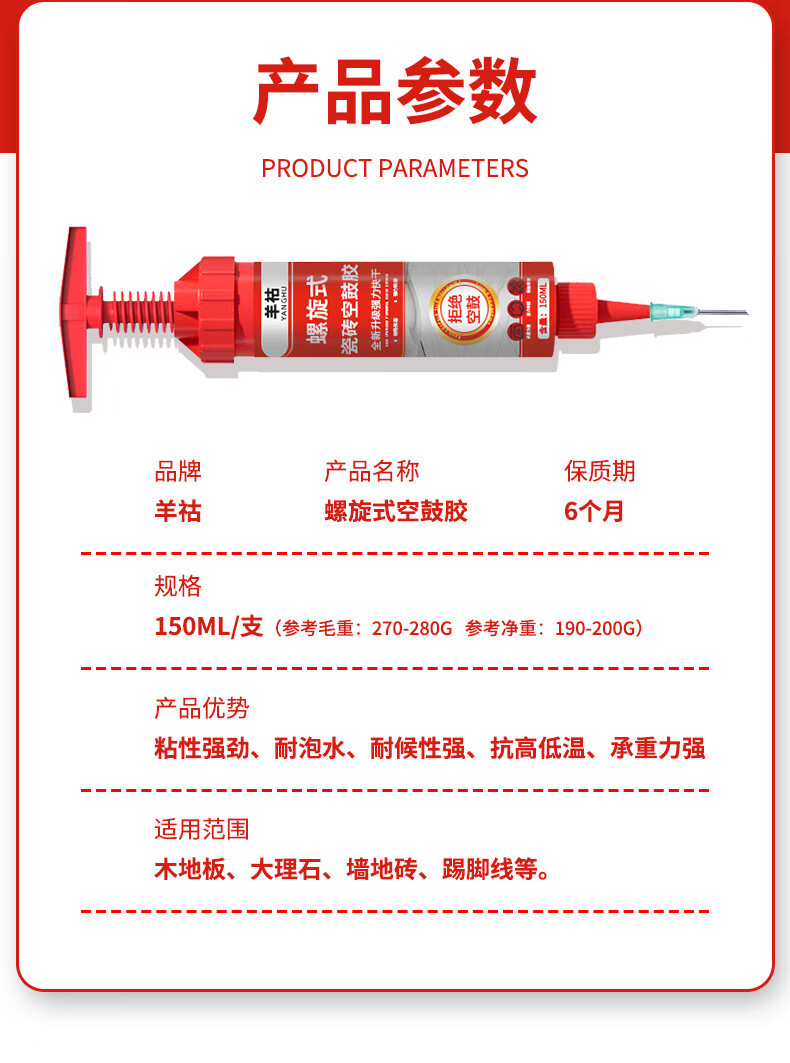 羊祜 快干瓷砖空鼓胶 渗透型 190-200g 150ml 1支
