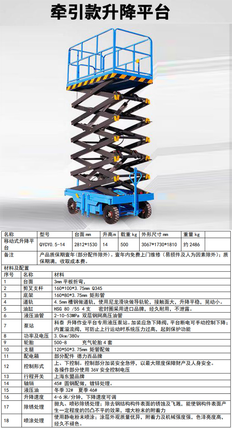 海斯迪克 剪叉式全电动高空作业平台 含卸货 QYCY0.5-14 平台尺寸:2290×1130mm 整机尺寸(围栏折叠):2495×1181×1920mm 1台
