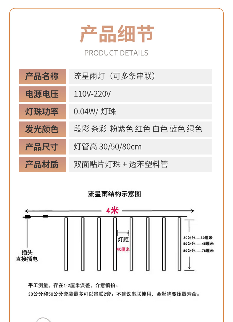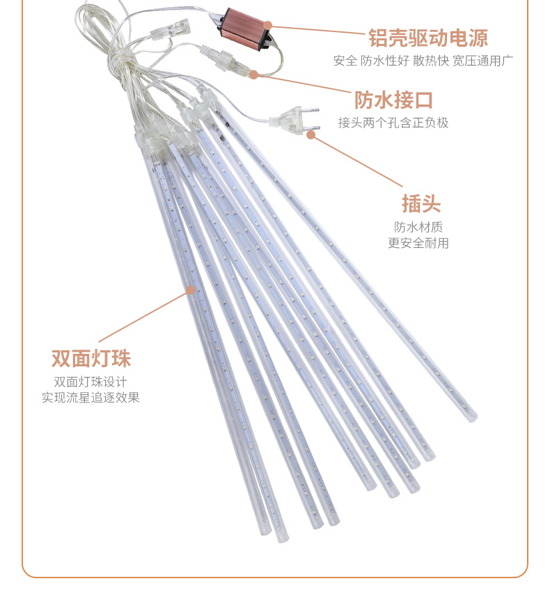 耐普德 LED流星雨彩灯 彩色 50cm 8支 1组