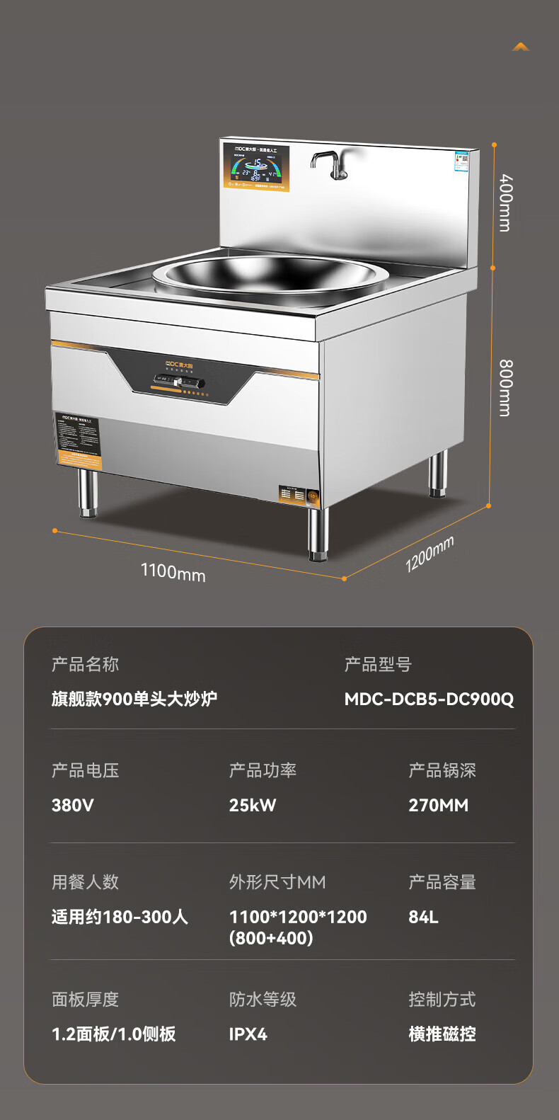 麦大厨 商用电磁炉 MDC-DCB5-DC900Q 一级能效 锅经Φ900mm 1台