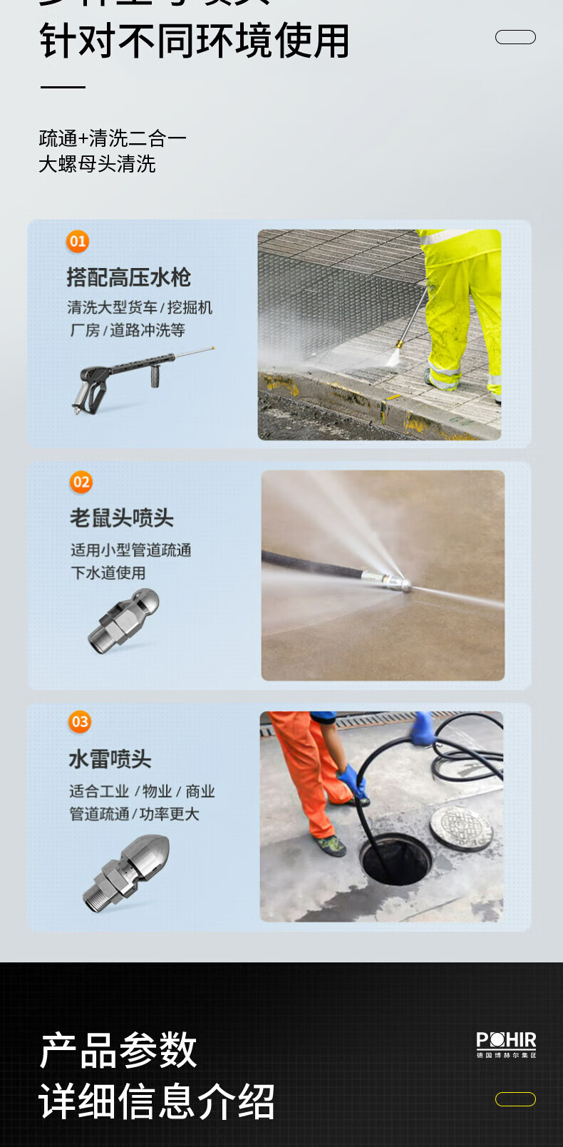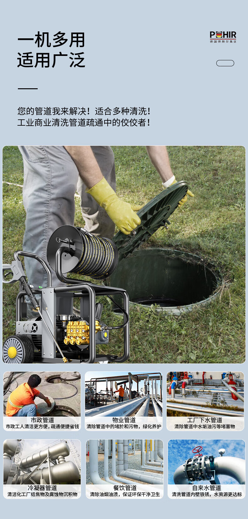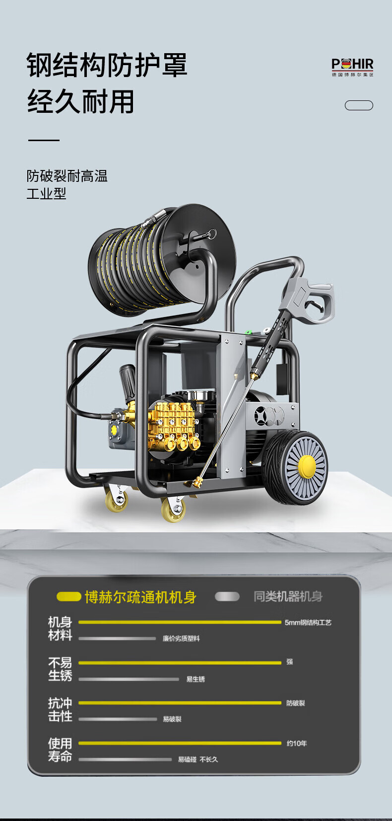 博赫尔 高压管道疏通机 PHR-1222E 3kW 120bar 220V 1个