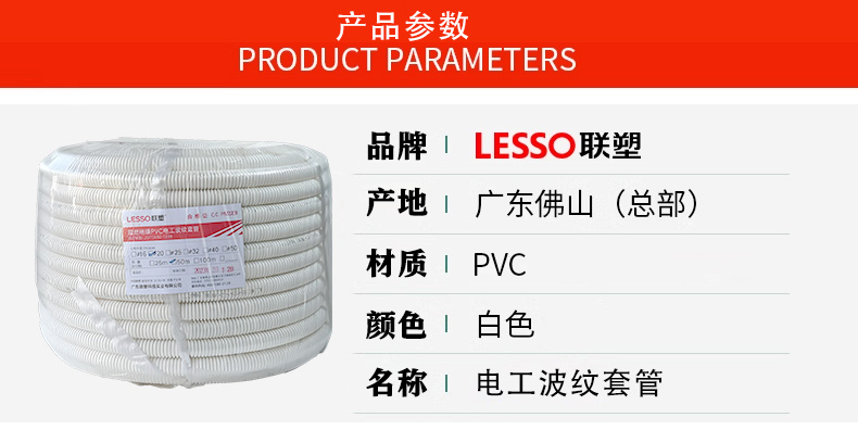 联塑 PVC穿线波纹管 DN20 20mm*50m 1条