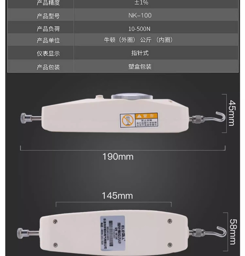 伊莱科 推拉力计 Nk-50 指针式 【机械】(50N公制5kg) 1个