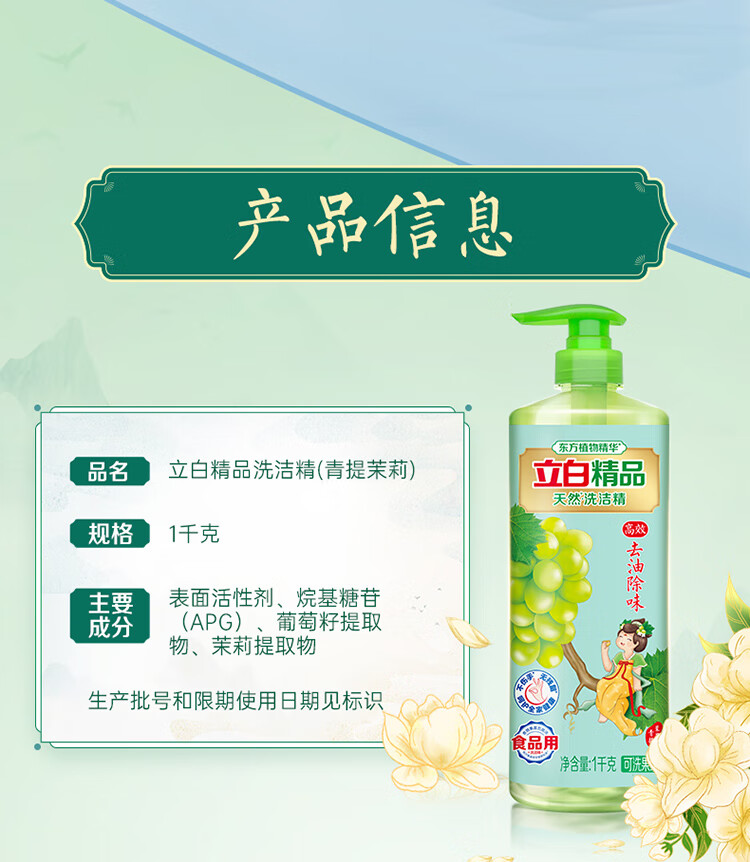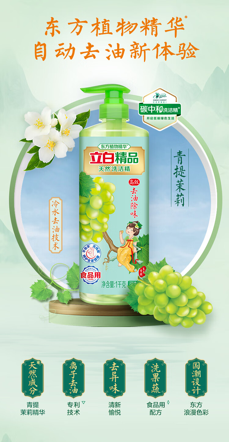 立白 精品青提茉莉洗洁精 1000g 1桶
