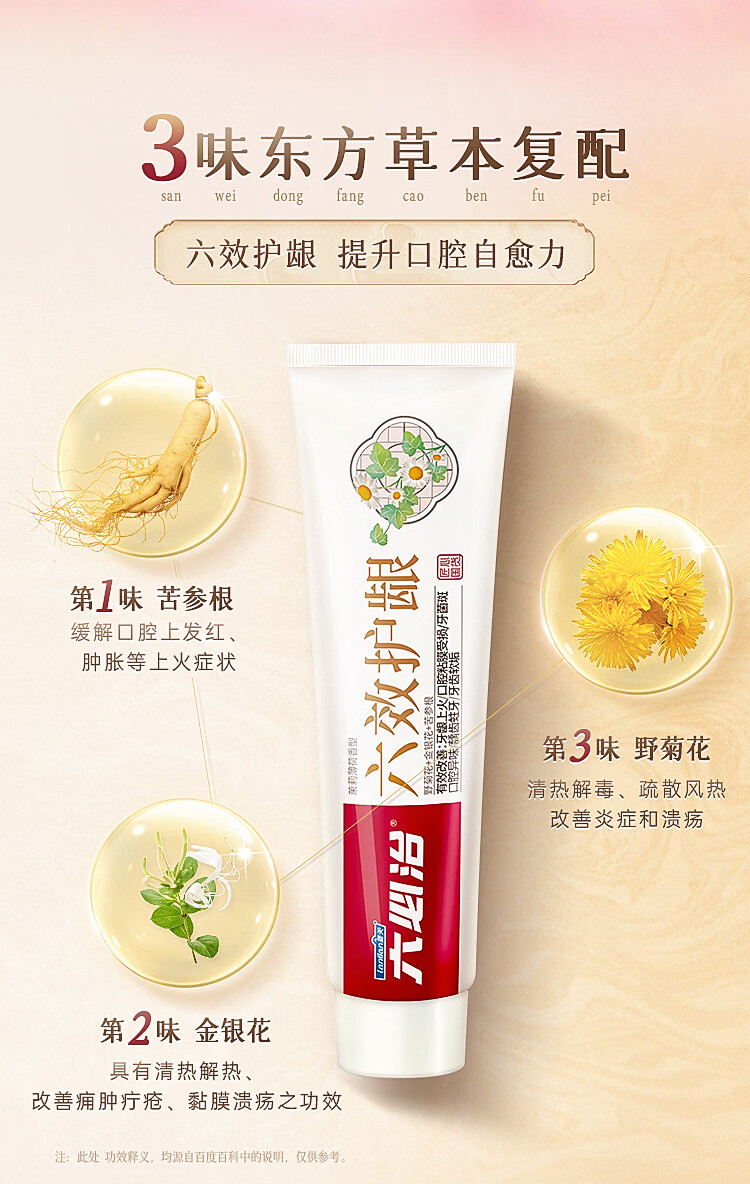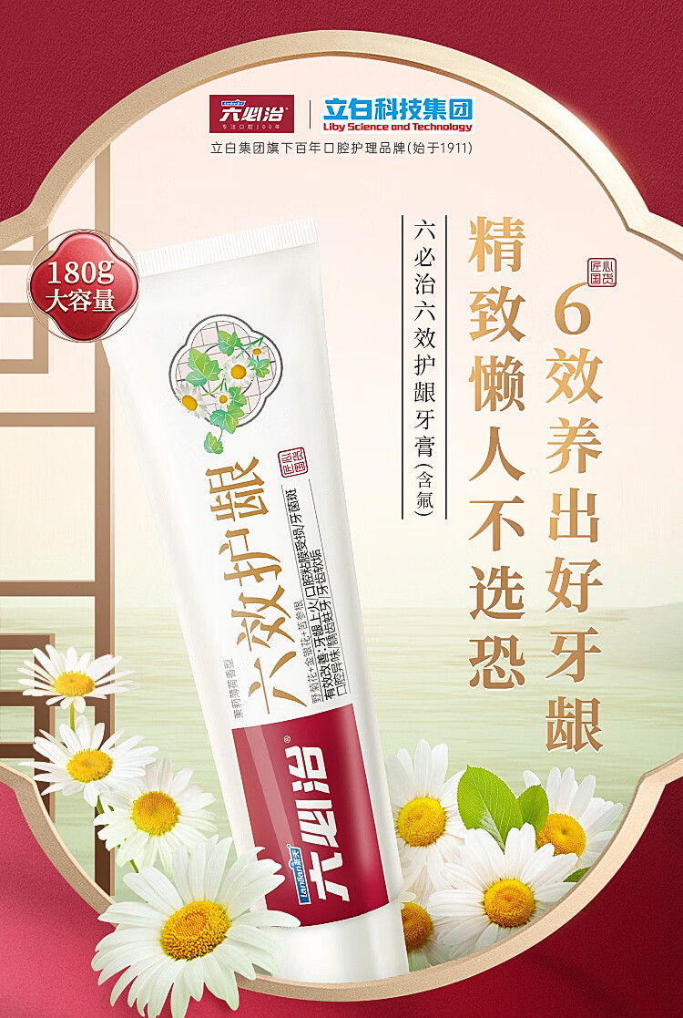 六必治 六效护龈牙膏 180g 护理口腔 清新口气 含氟牙膏 1支