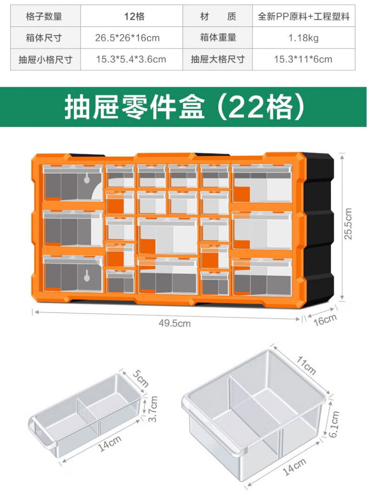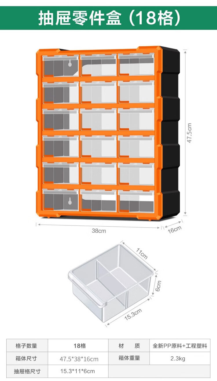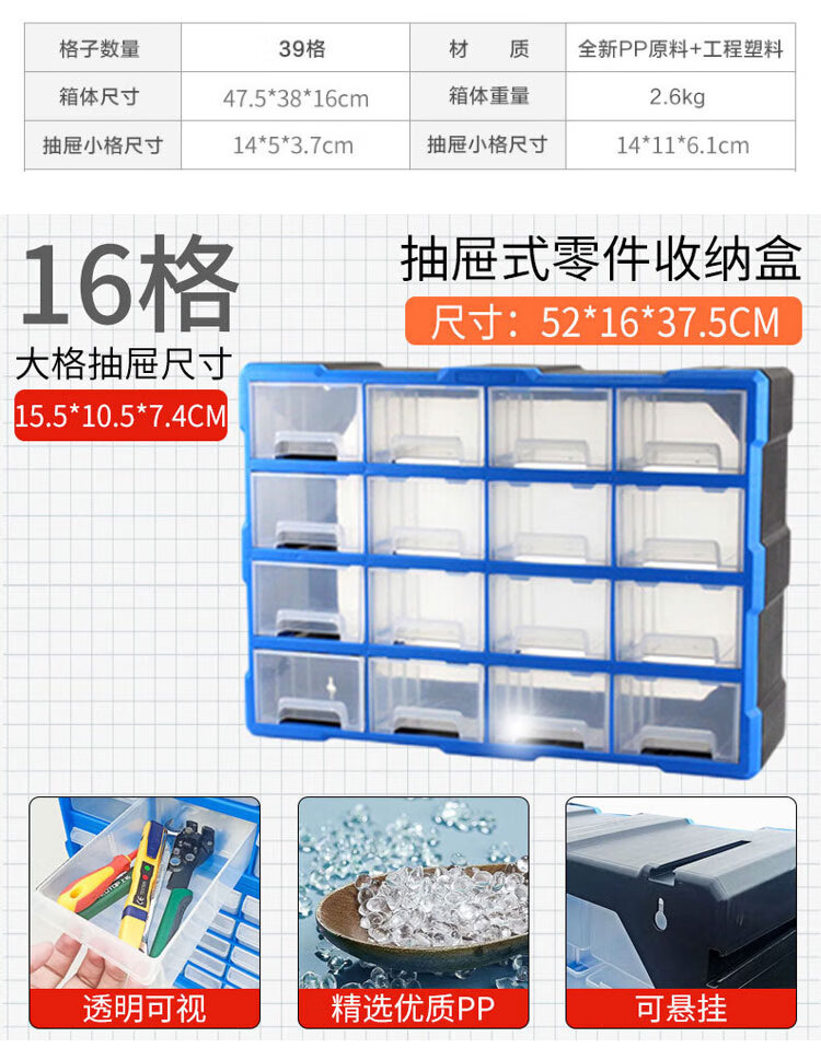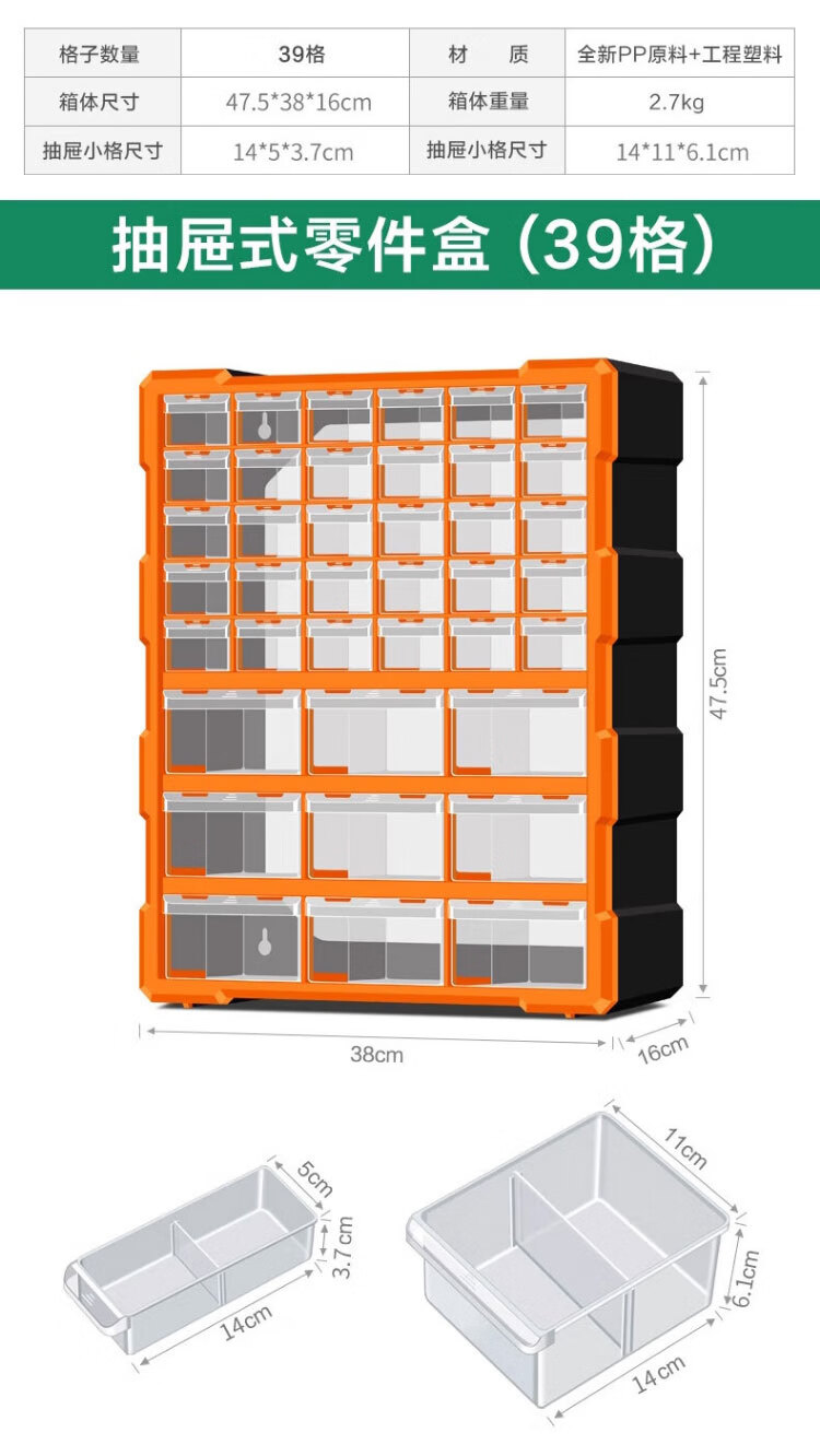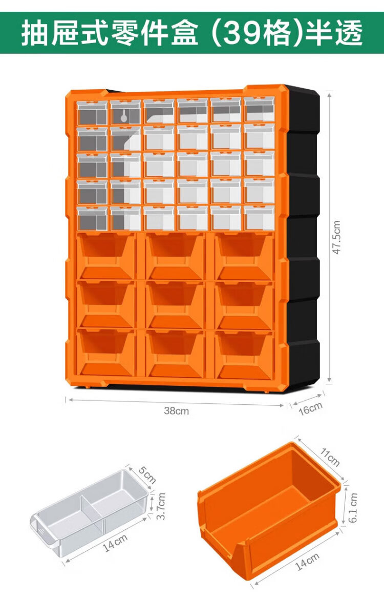 稳斯坦 (38)格抽屉式零件盒 WST151 黄色 52.5*16*37.5cm 1个