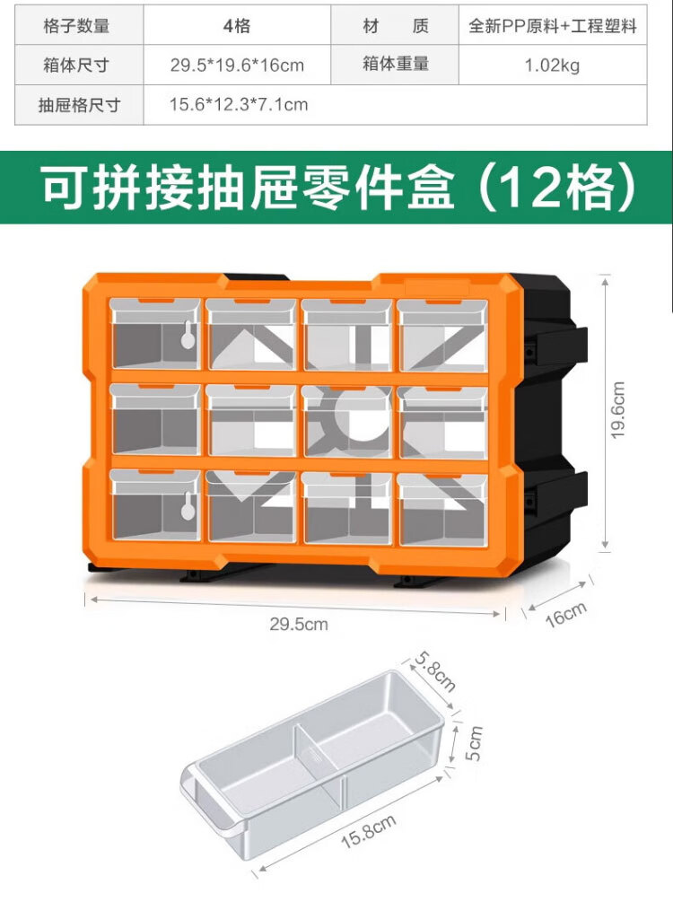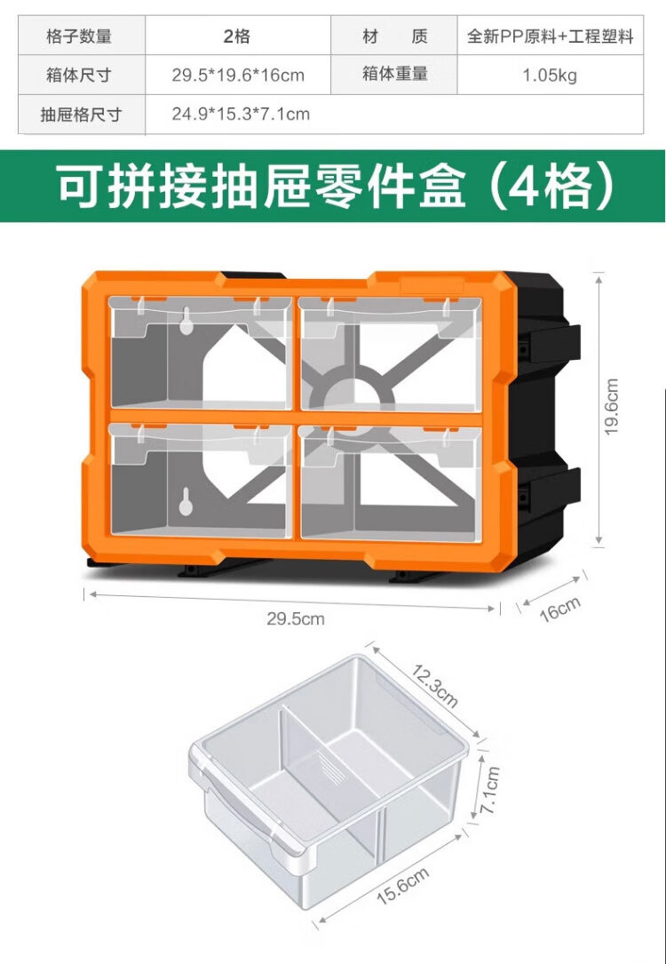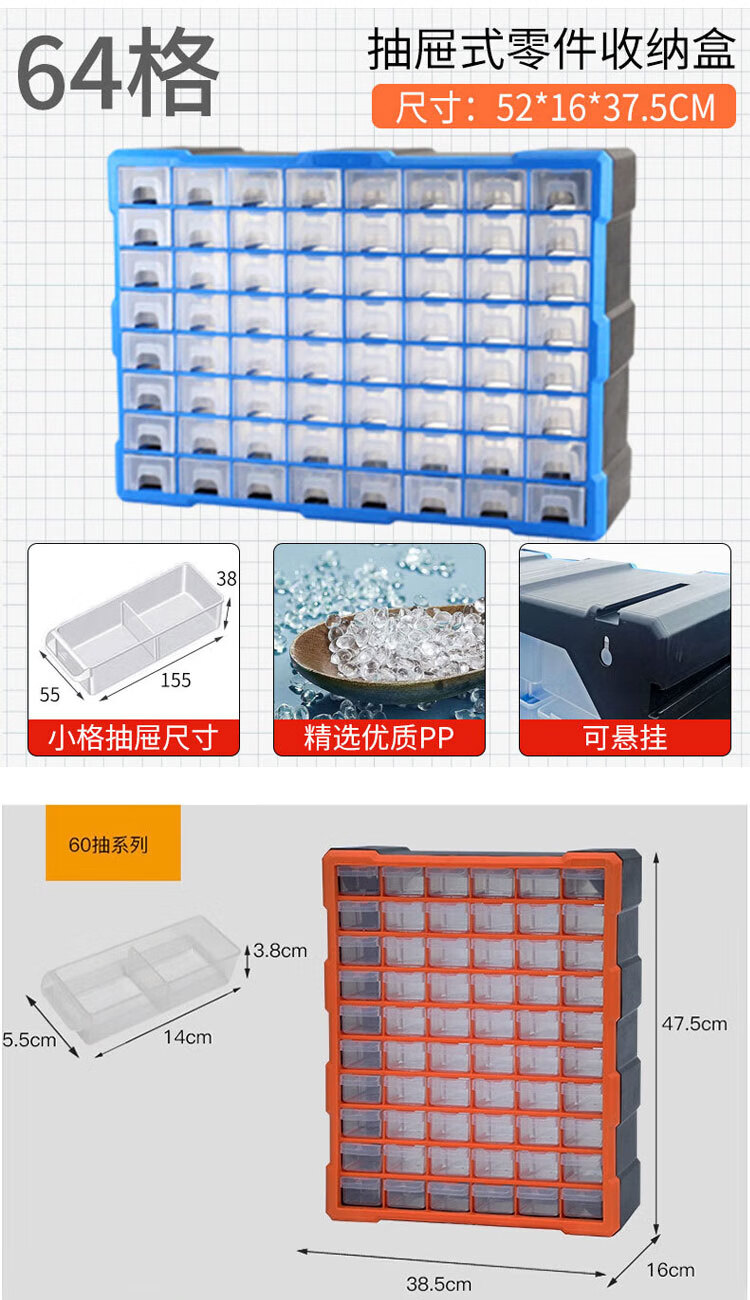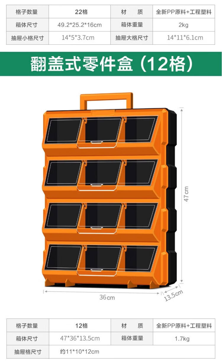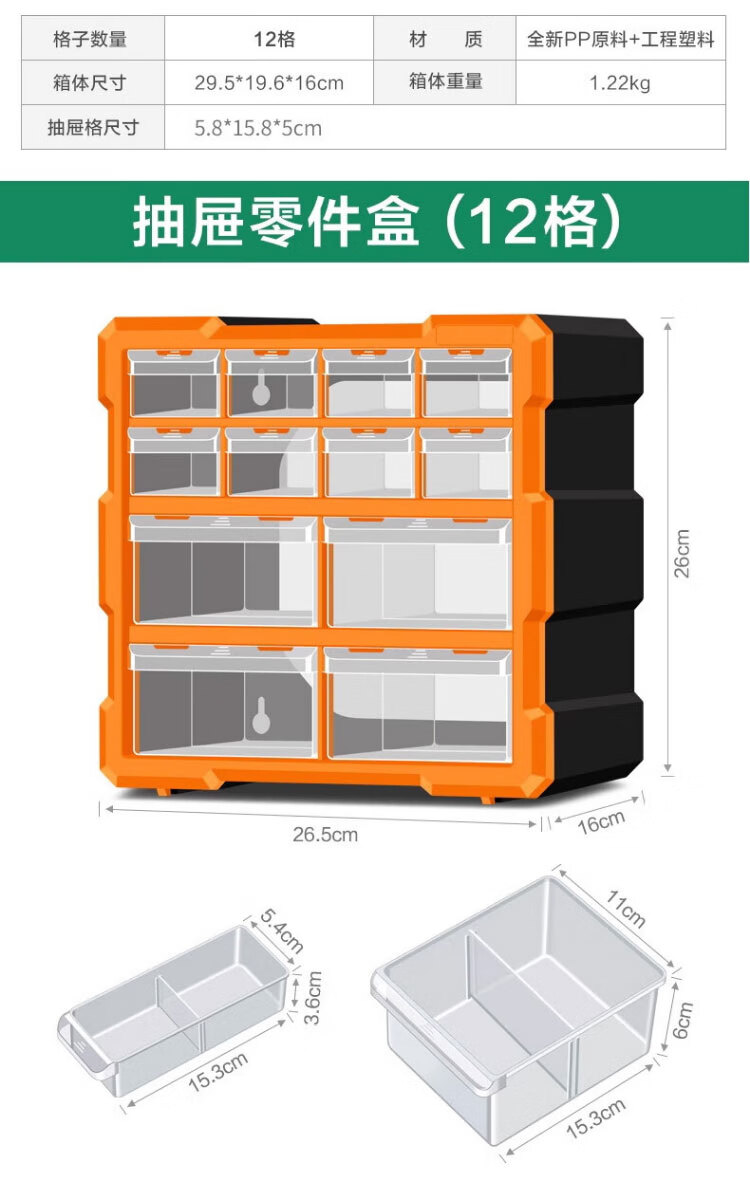 稳斯坦 (38)格抽屉式零件盒 WST151 黄色 52.5*16*37.5cm 1个