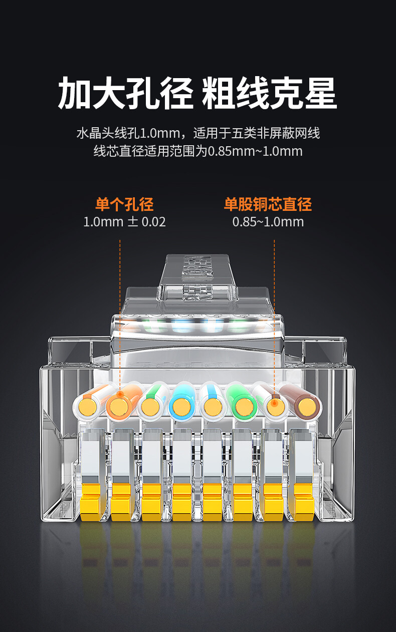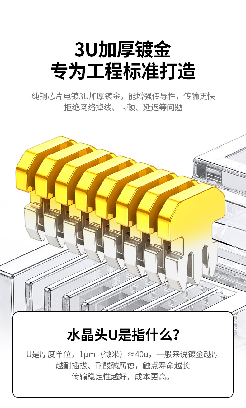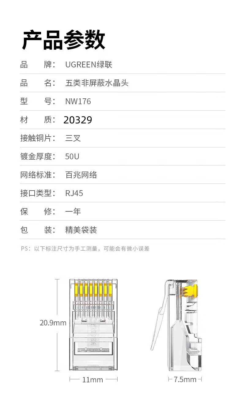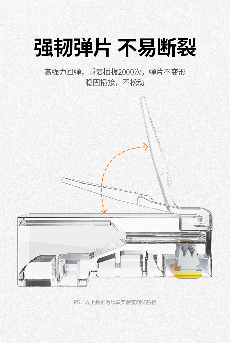 绿联 超五类RJ45千兆网络水晶头 20329 8P8C电脑网线Cat5e类连接头 10个 1件