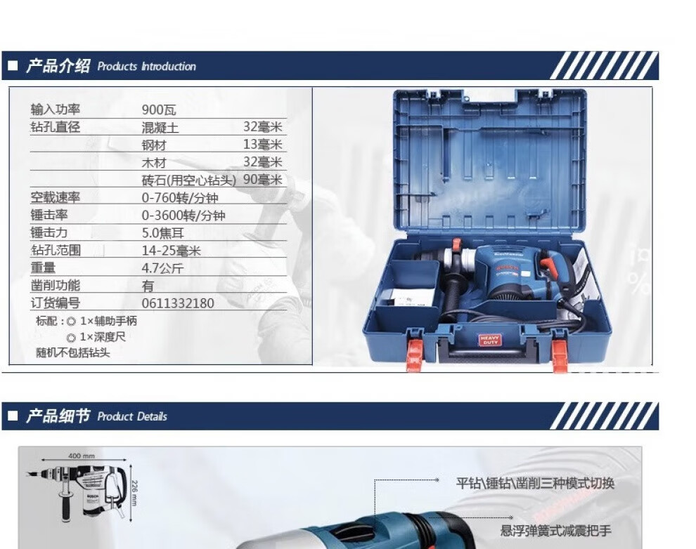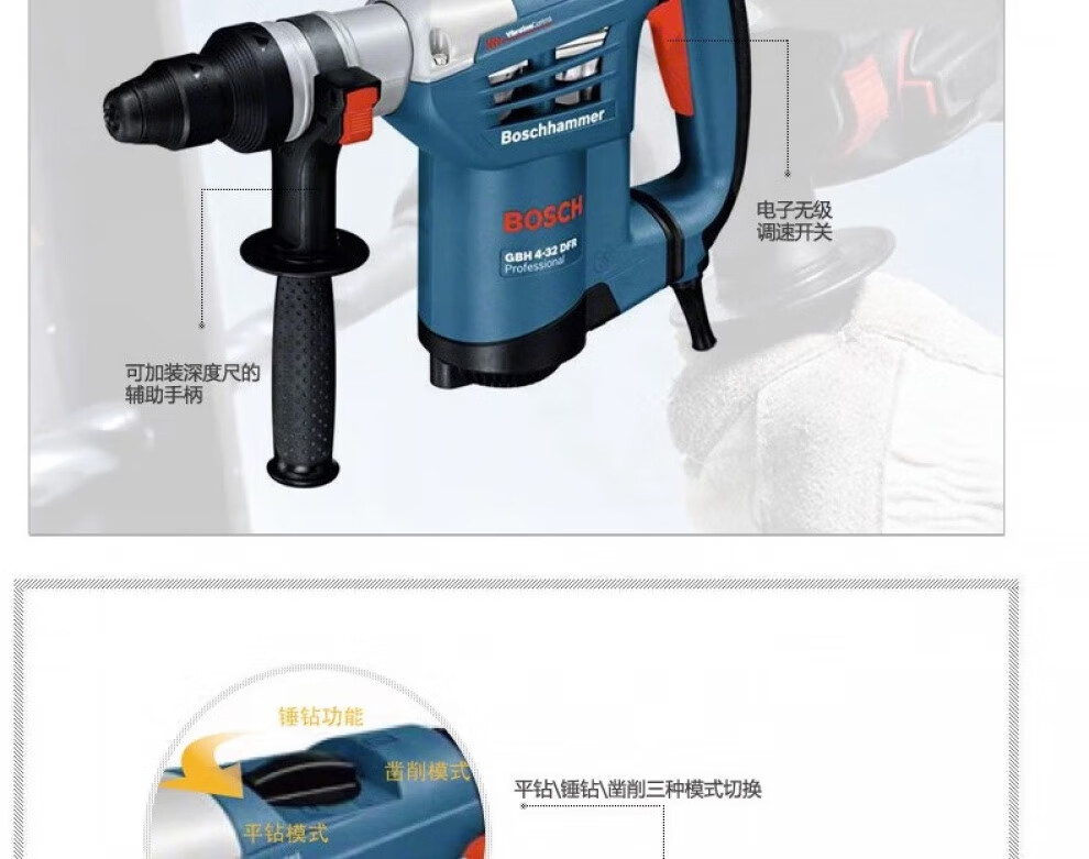博世 电锤 GBH4-32DFR 220V 适用范围14~25mm 900W 1台