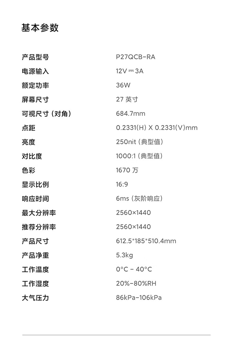 小米 Redmi显示器 P27QCB-RA 27英寸 A27Q 多功能支架版 1台