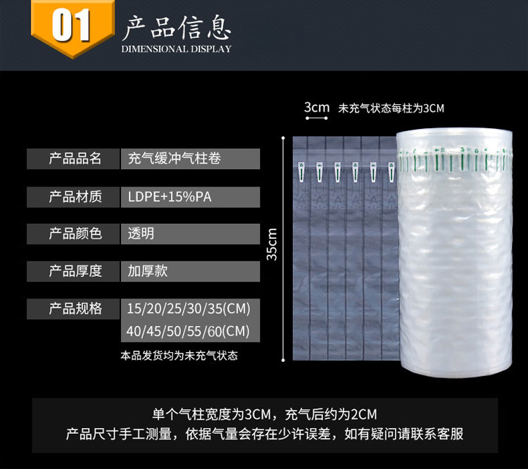 • 商品名称:海斯迪克 充气缓冲气柱卷